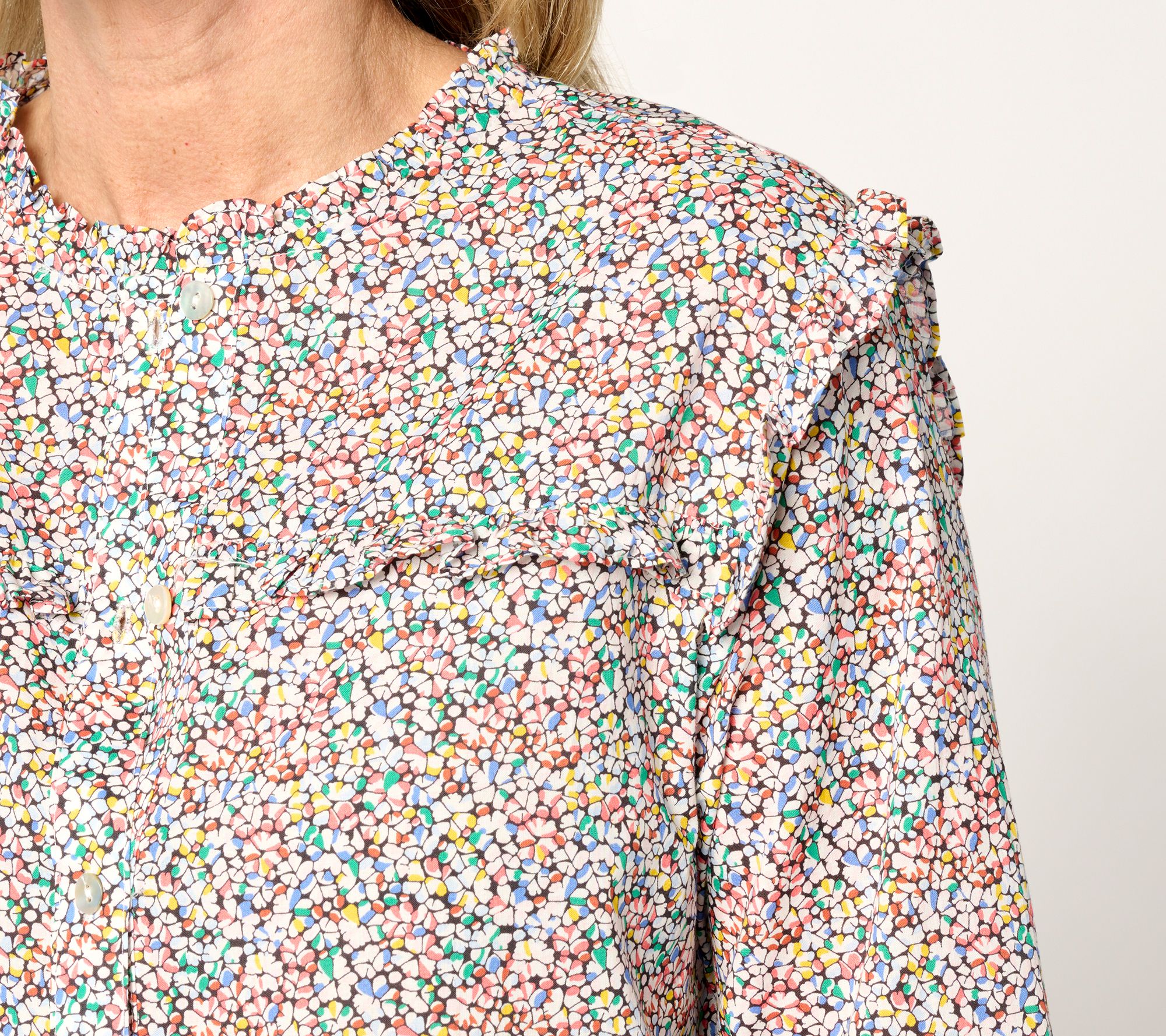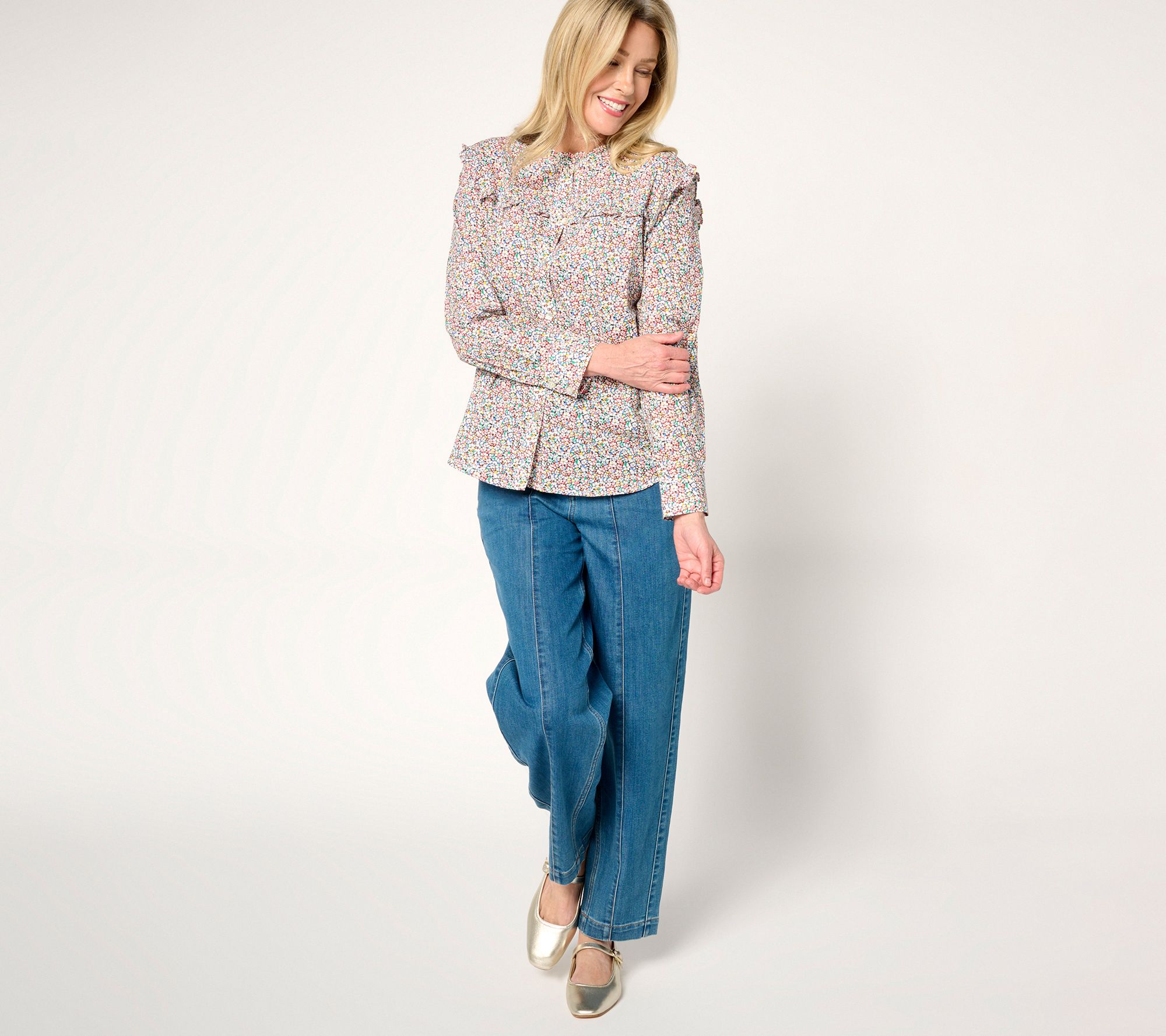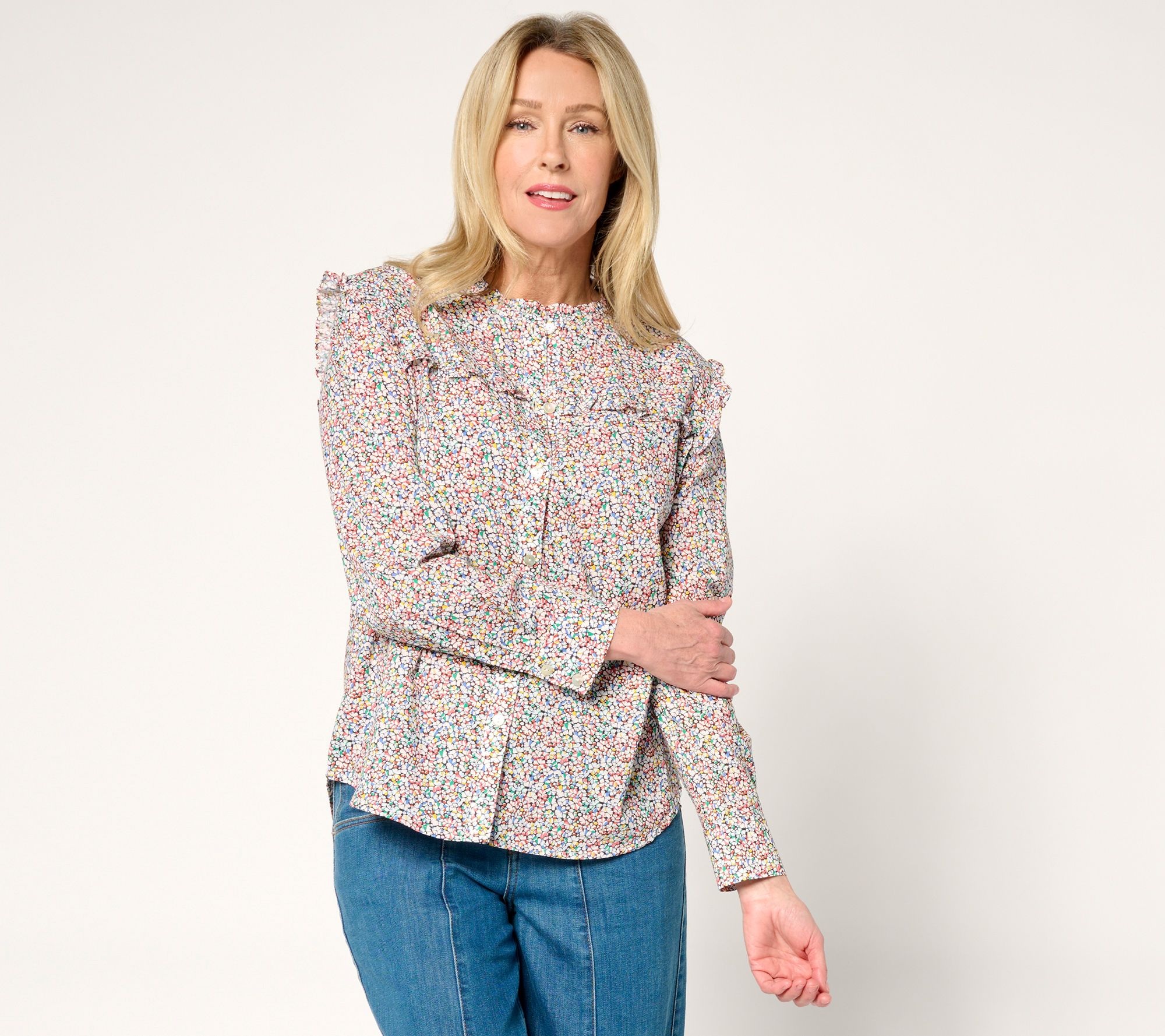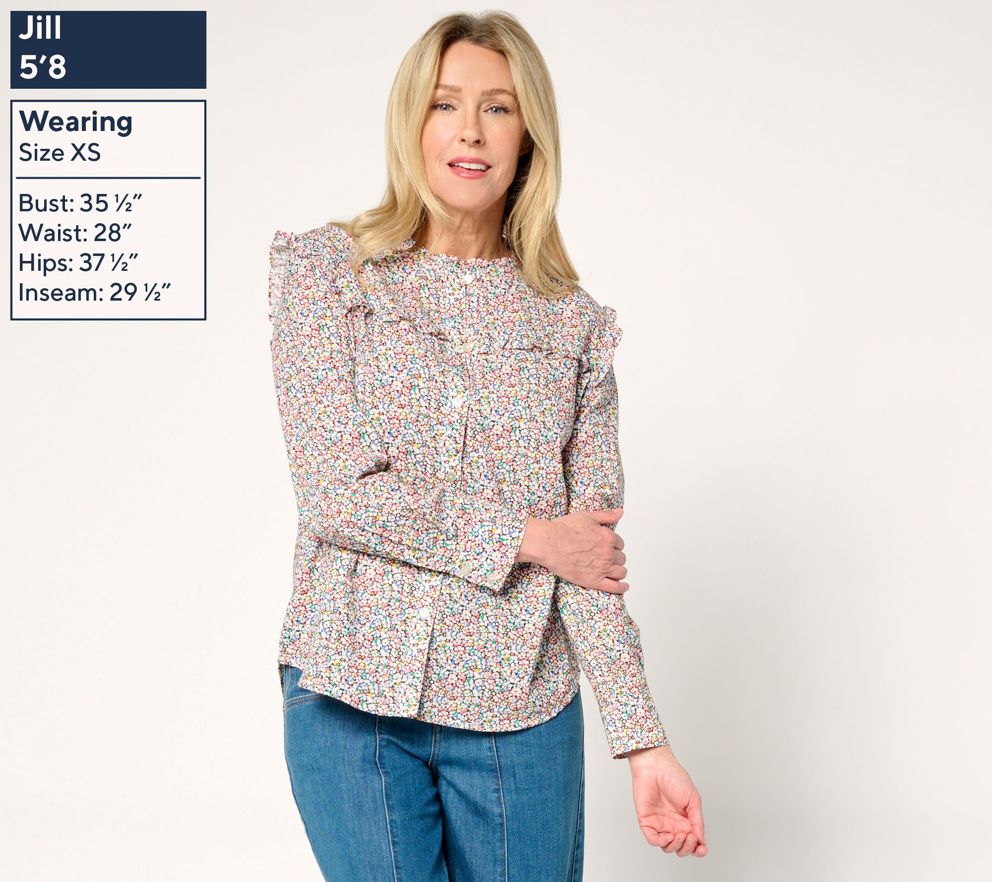 by Stacy London Printed Voile Shirt with Ruffle Detail