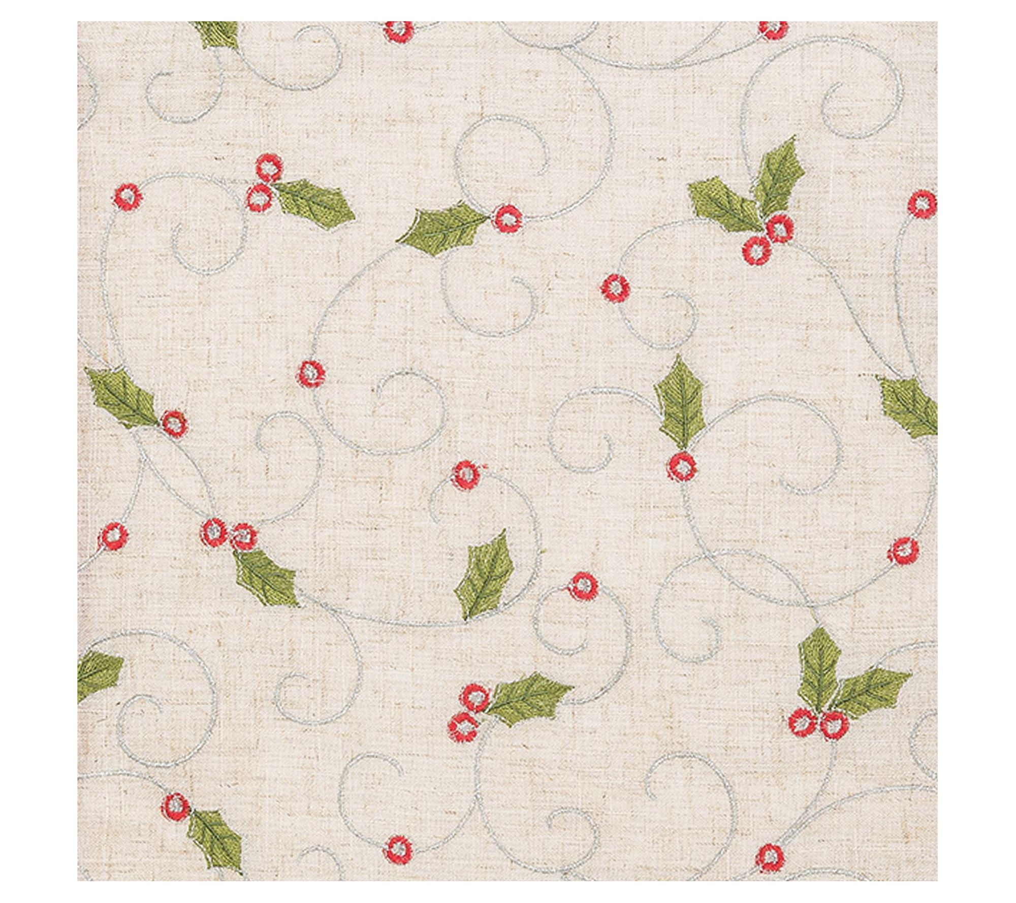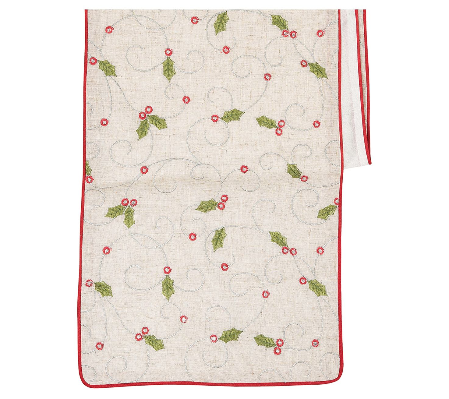 Give your holiday gathering a warm, nostalgic feel thanks to this embroidered holly table runner. From C&F Home.