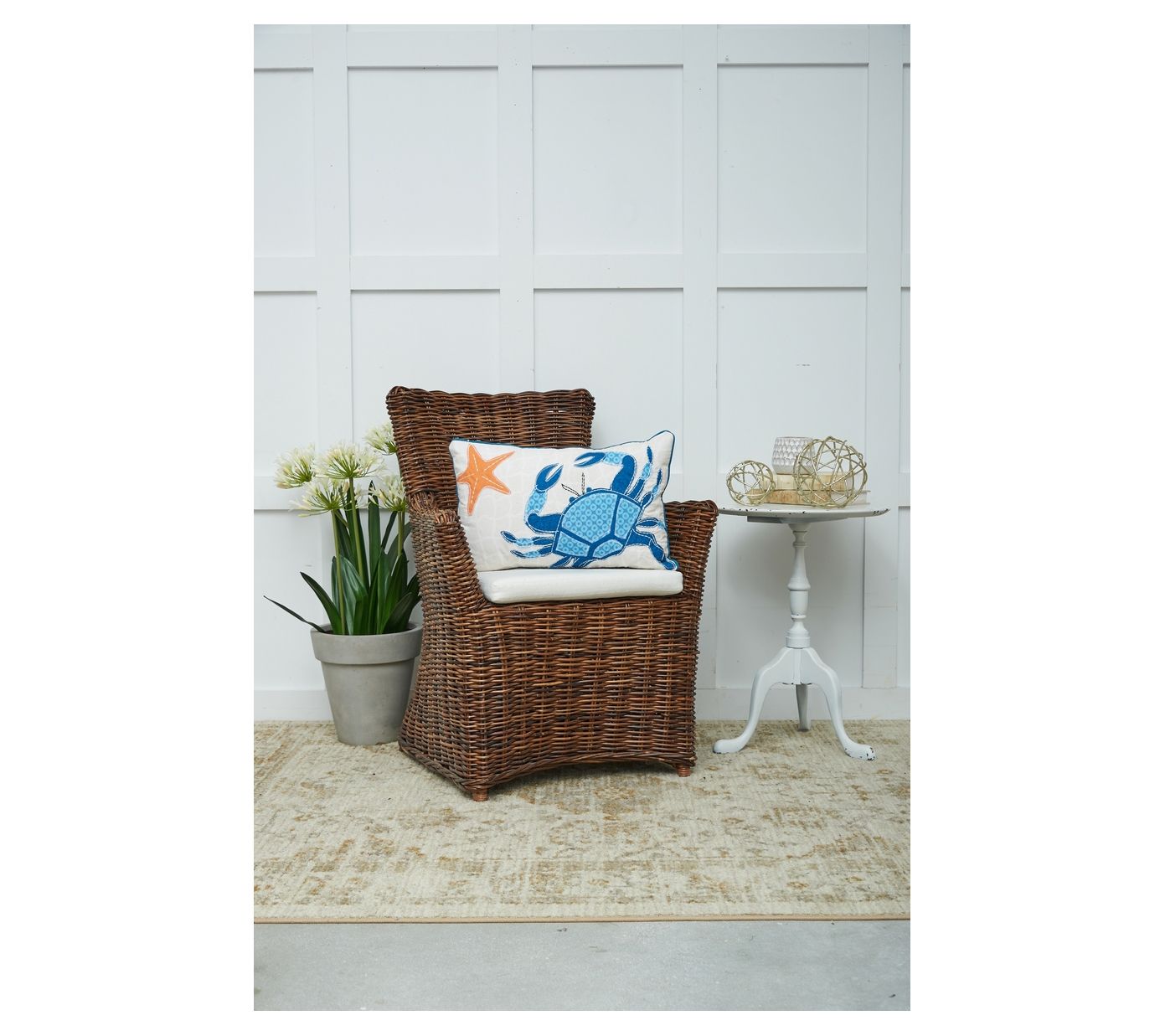 If the beach is your happy place, you're going to love the seaside charm of this crab and starfish throw pillow. From C&F Home.