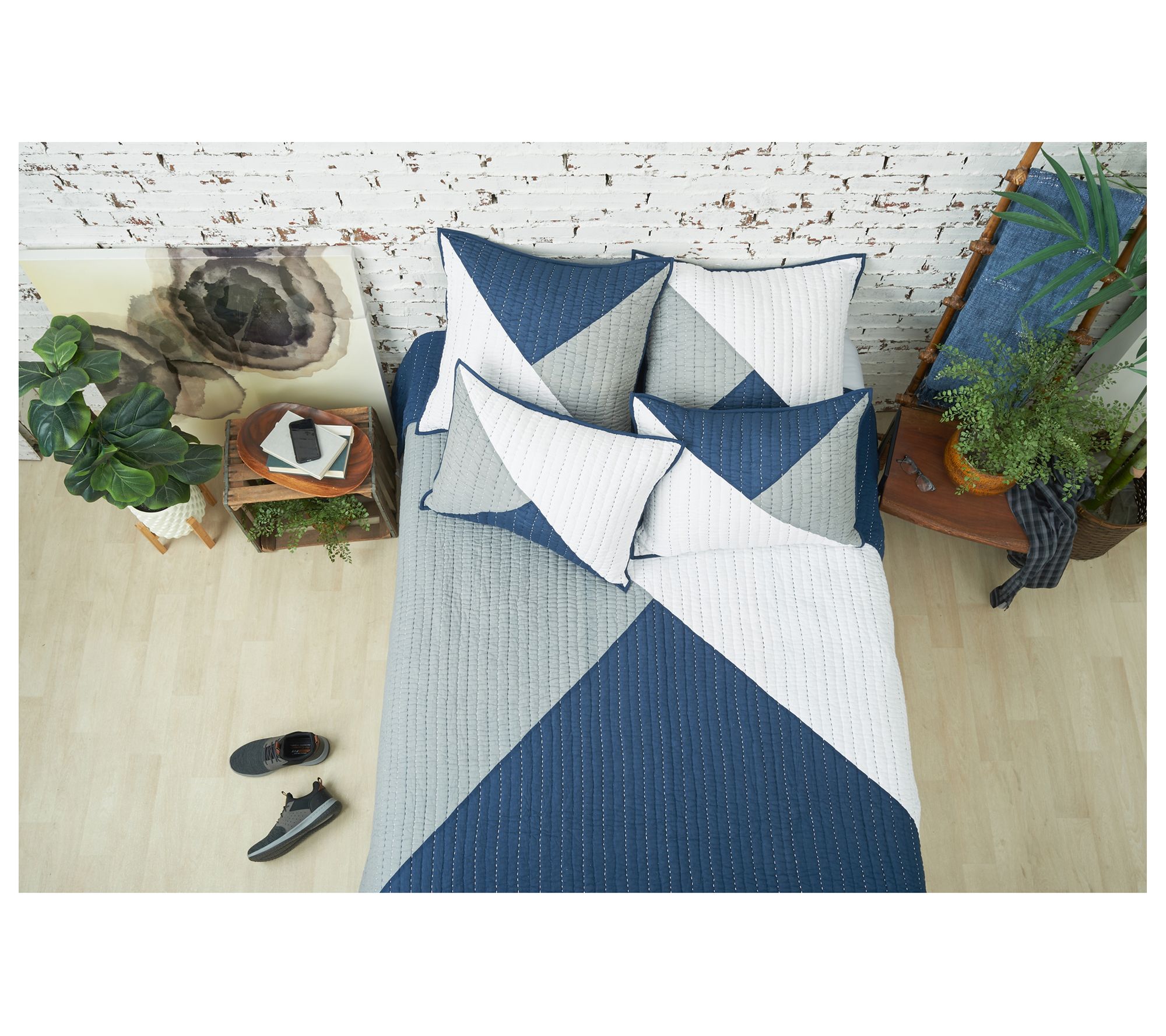 Asymmetrical yet perfectly balanced, this cotton quilt ties a cool color combo together for a casual, modern look. From the Valerie Parr Hill Collection.
