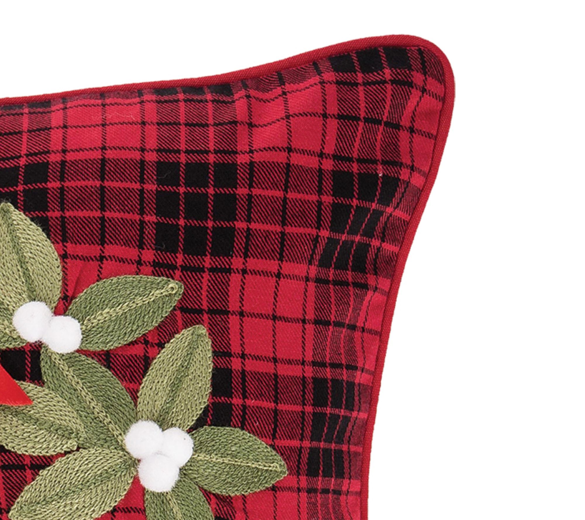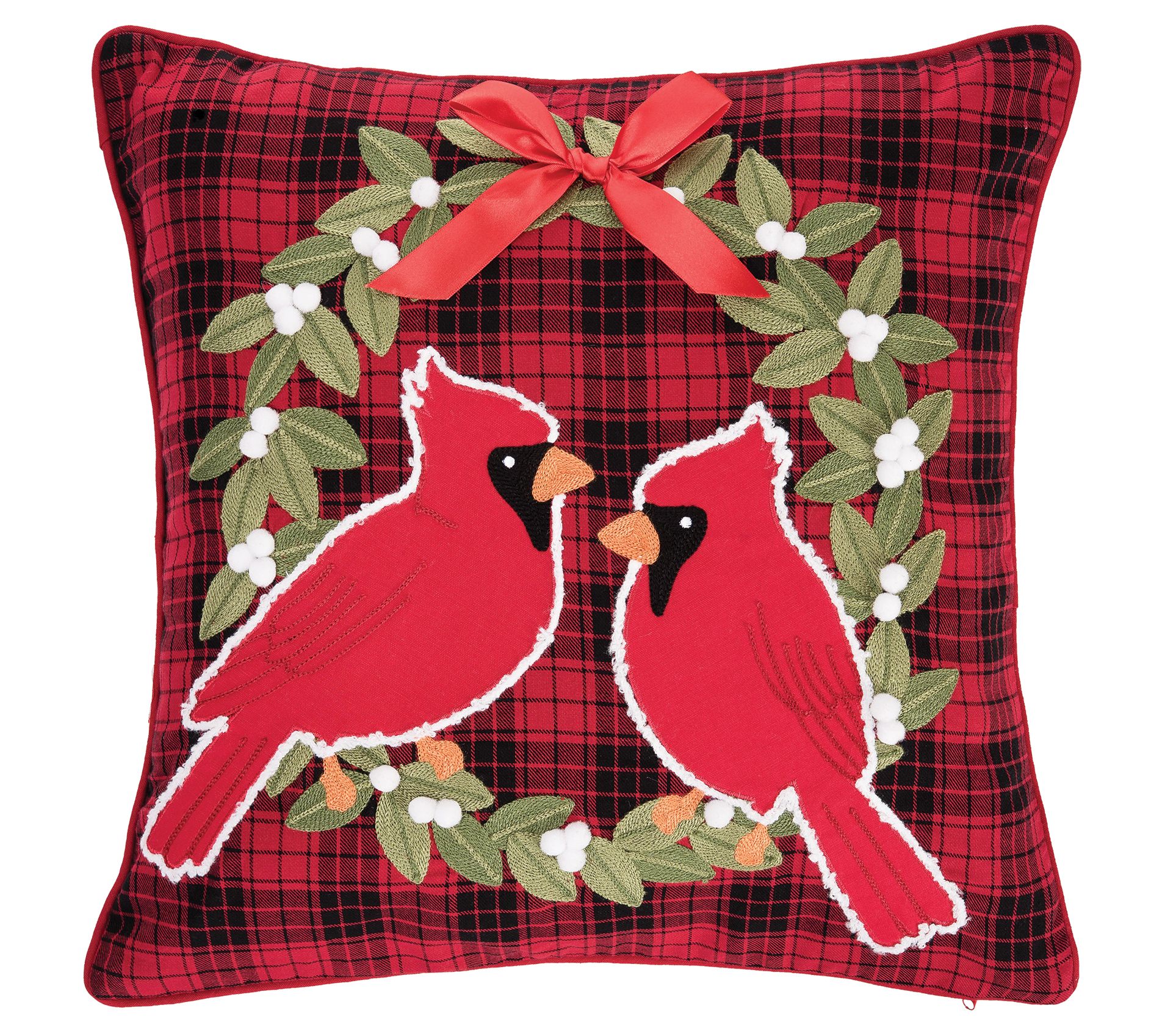C&F Home Cardinal Plaid Wreath Tufted Throw Pil low