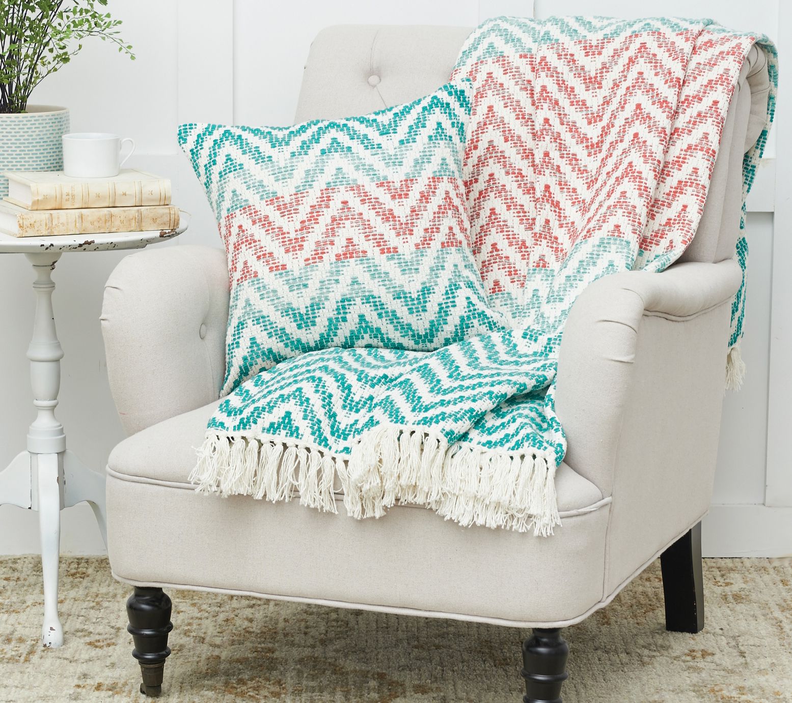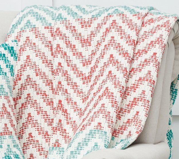 Nothing says cozy comfort like this chevron throw blanket. Featuring a decorative fringe, this throw provides the perfect pop of color for the easy chair in the guest room or the sofa in a living room. From C&F Home.