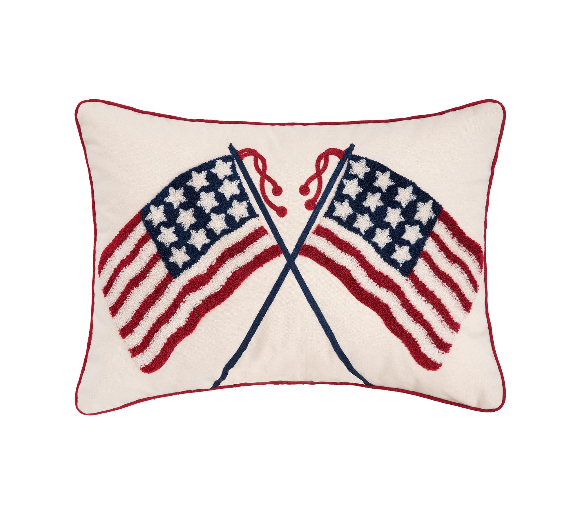 Plush to the touch and pleasing to the eye, this tufted pillow puts your patriotism on display with its double flag design. From C&F Home.