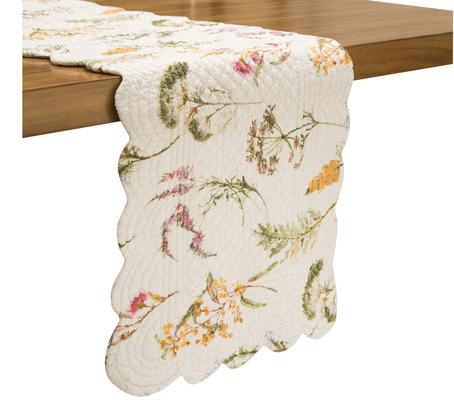 Brighten your breakfast nook with the botanical motif of this reversible runner finished with a scalloped edge. From C&F Home.