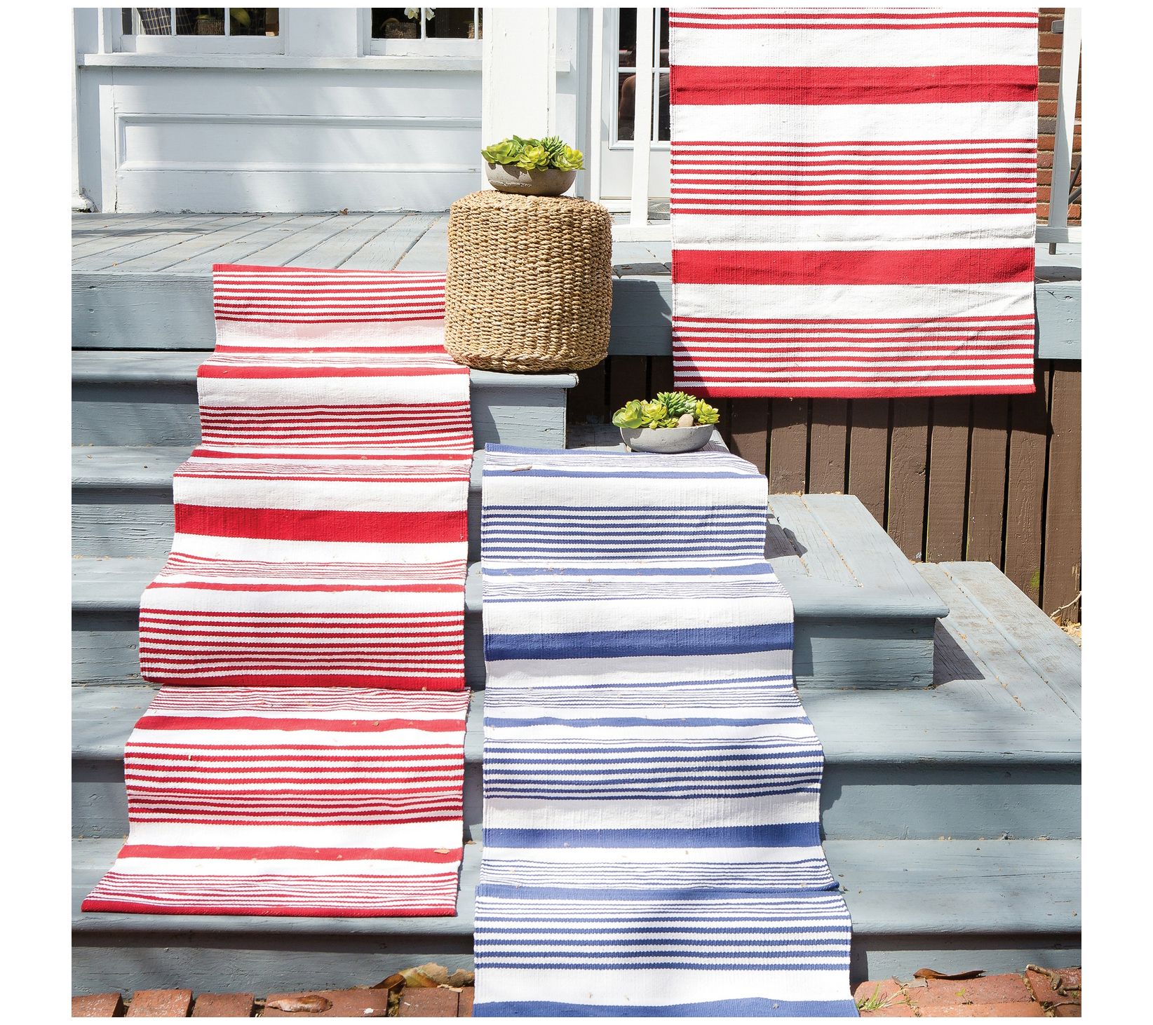 Freshen up your floor decor with this woven rug featuring a red-and-white striped design that feels oh-so good underfoot. From C&F Home.