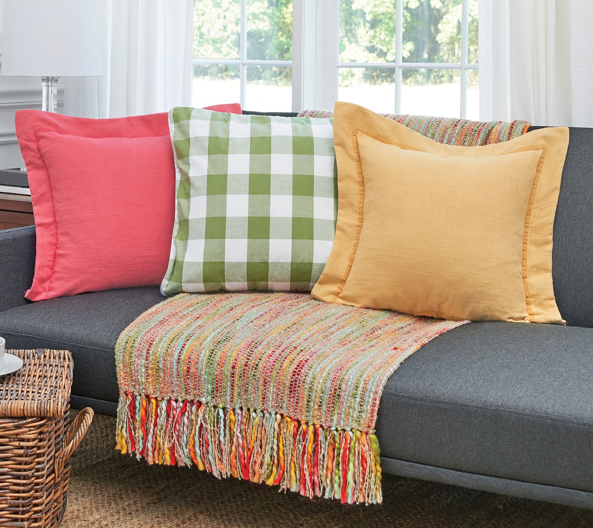 Tailor your living room decor with the tidy style of this solid-hued pillow featuring a wide flange edge and a coordinating border. From C&F Home.