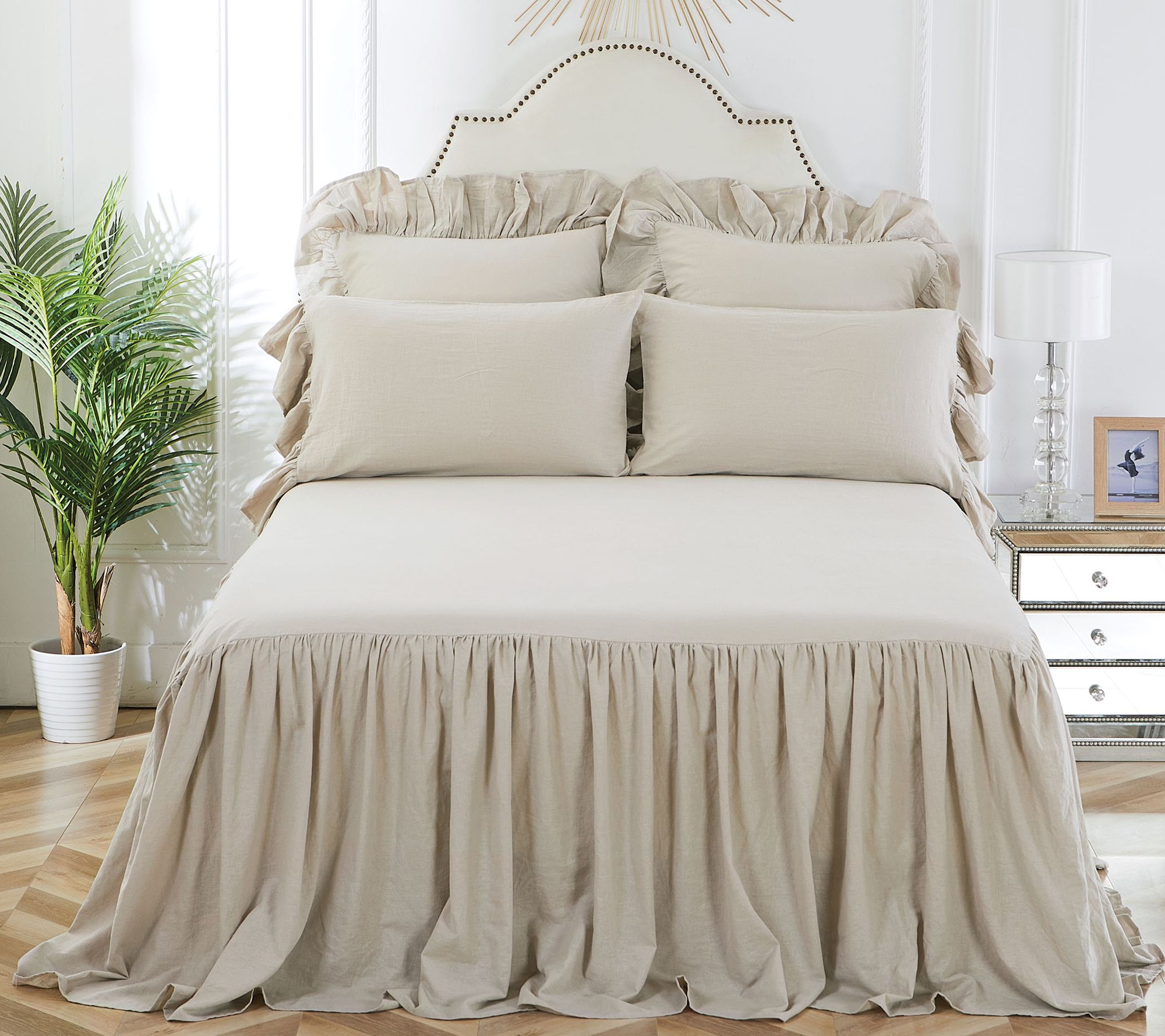 Whether you are creating a traditional garden cottage guest room, styling an eclectic bohemian master suite, or completing your French country decor, this ruffled queen size bedspread provides the finishing touch. From C&F Home.