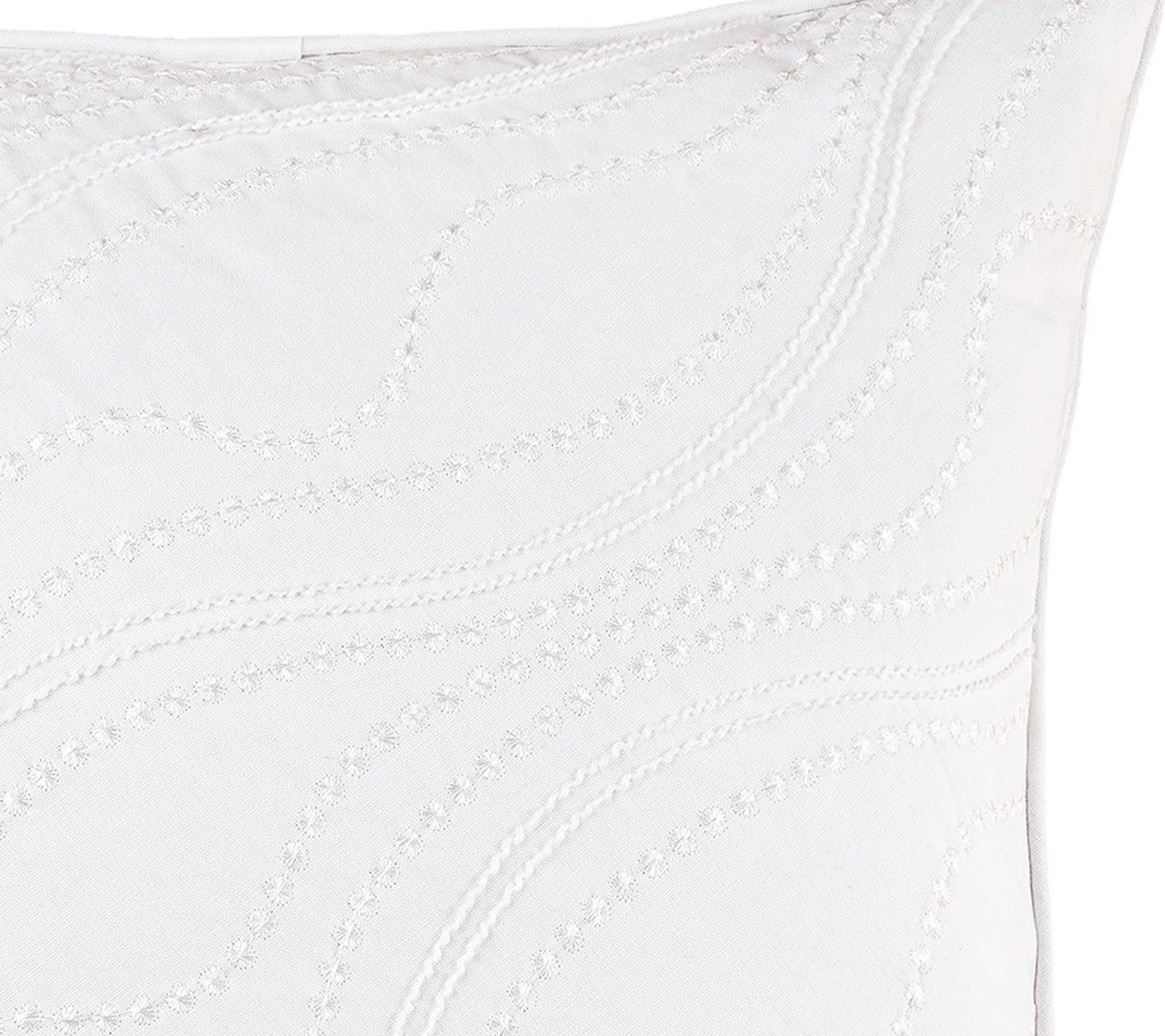 Layer simple, elegant beauty into your favorite space with this square accent pillow featuring all-white wave embroidery, providing a delightfully subtle backdrop to your vibrant coastal accents. Finished with coordinating white piped edging, this pillow is perfect for almost any style. From C&F Home.