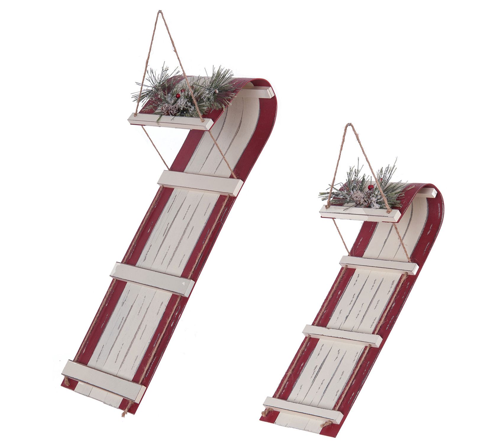 Celebrate the fun of the holidays with this set of two sled ornaments, each adorned with festive foliage and beautiful details. From C&F Home.