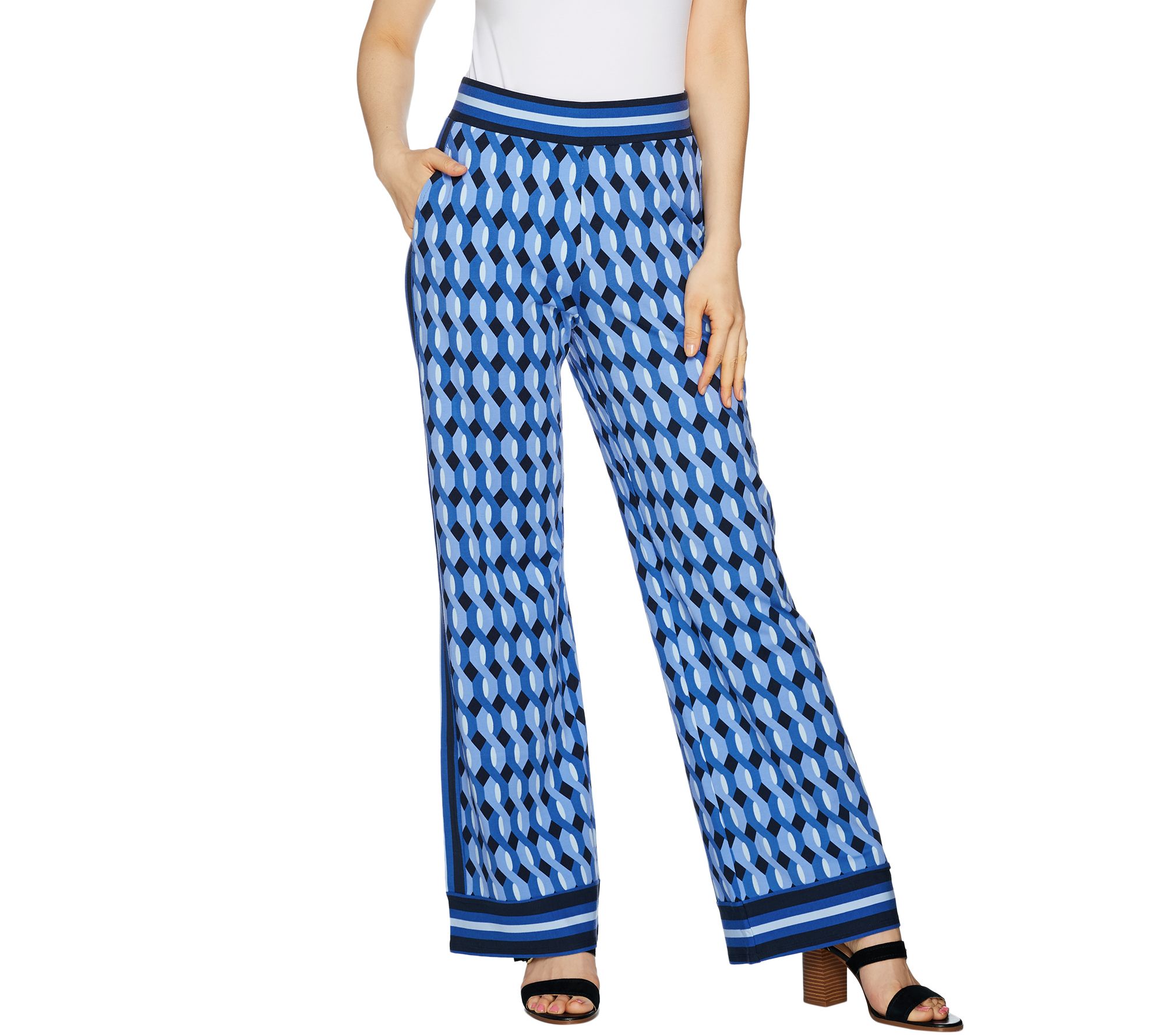 Stripe details add a fun and vibrant finish to these cute and chic patterned pull-on pants. From C. Wonder.