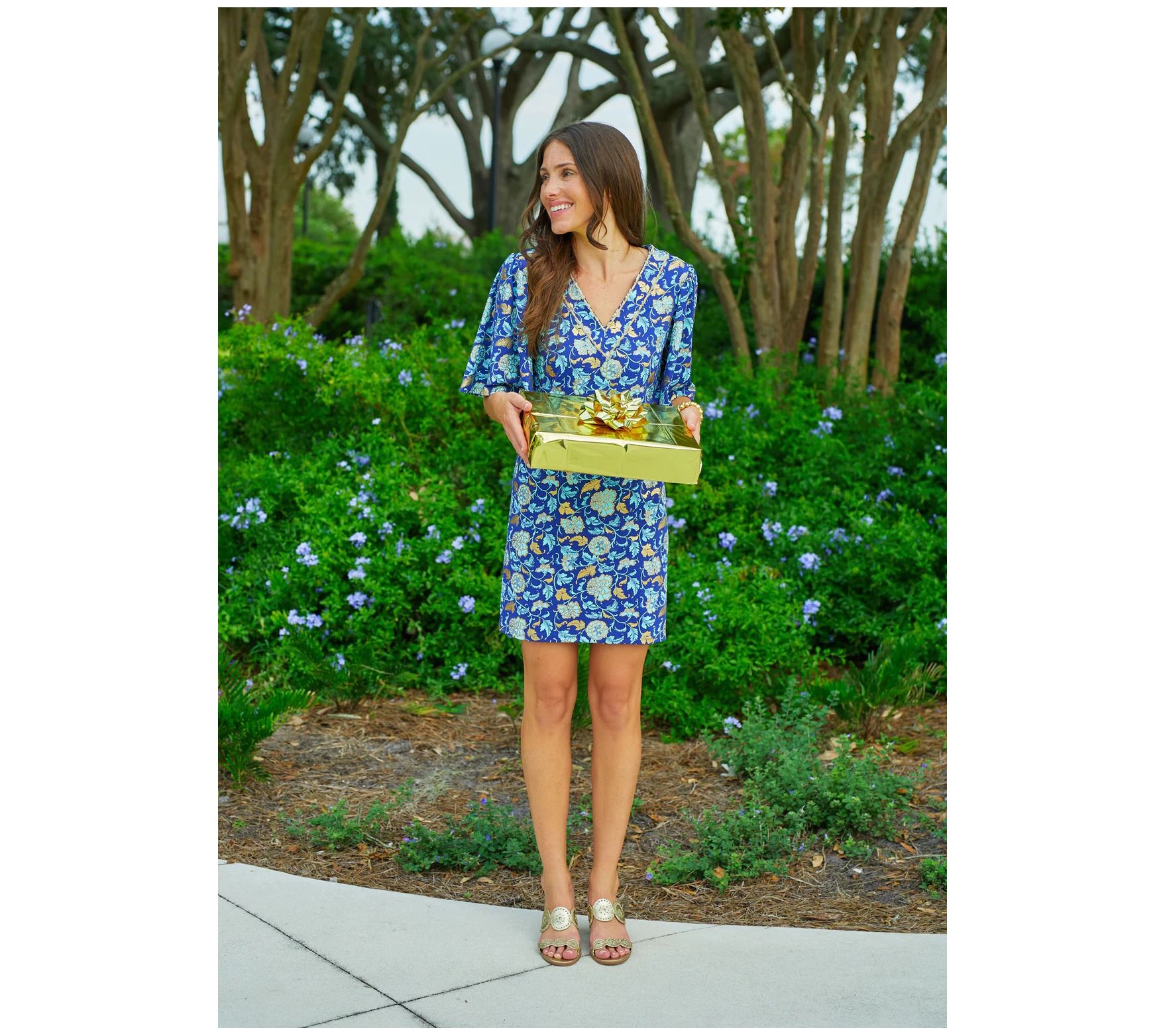 • Features: flutter sleeves, V-neckline, above-the-knee length