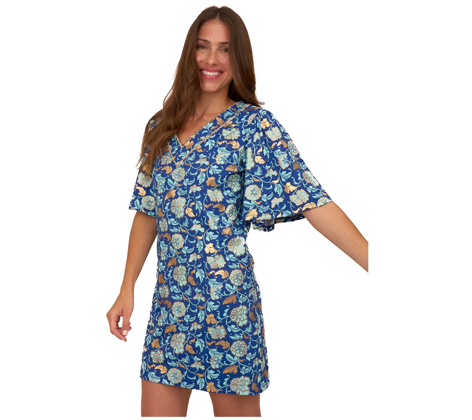 Cabana Life Flutter Elbow Sleeve V-Neck Shift Dress UPF 50