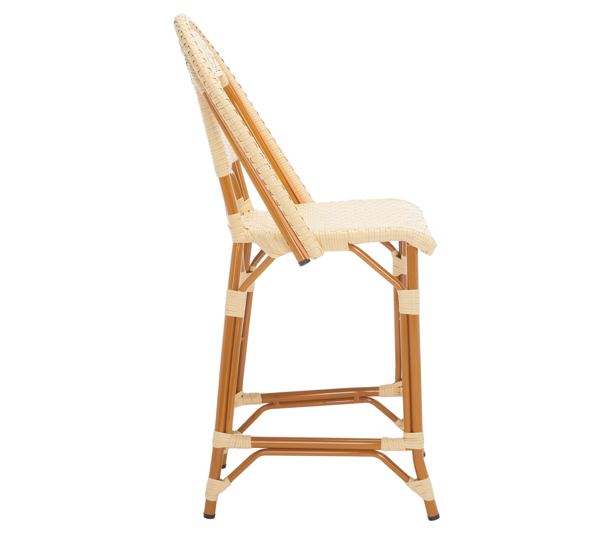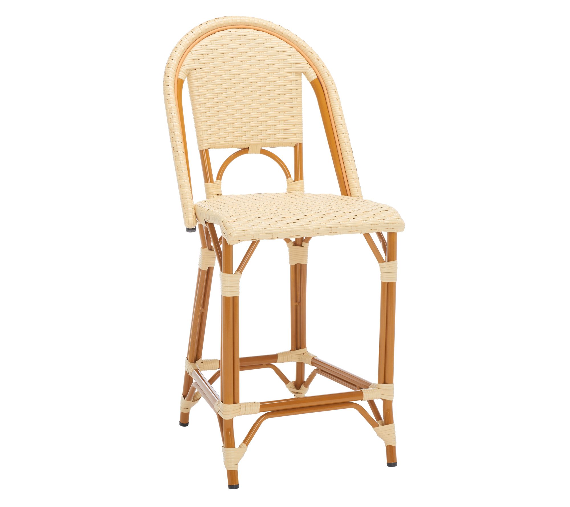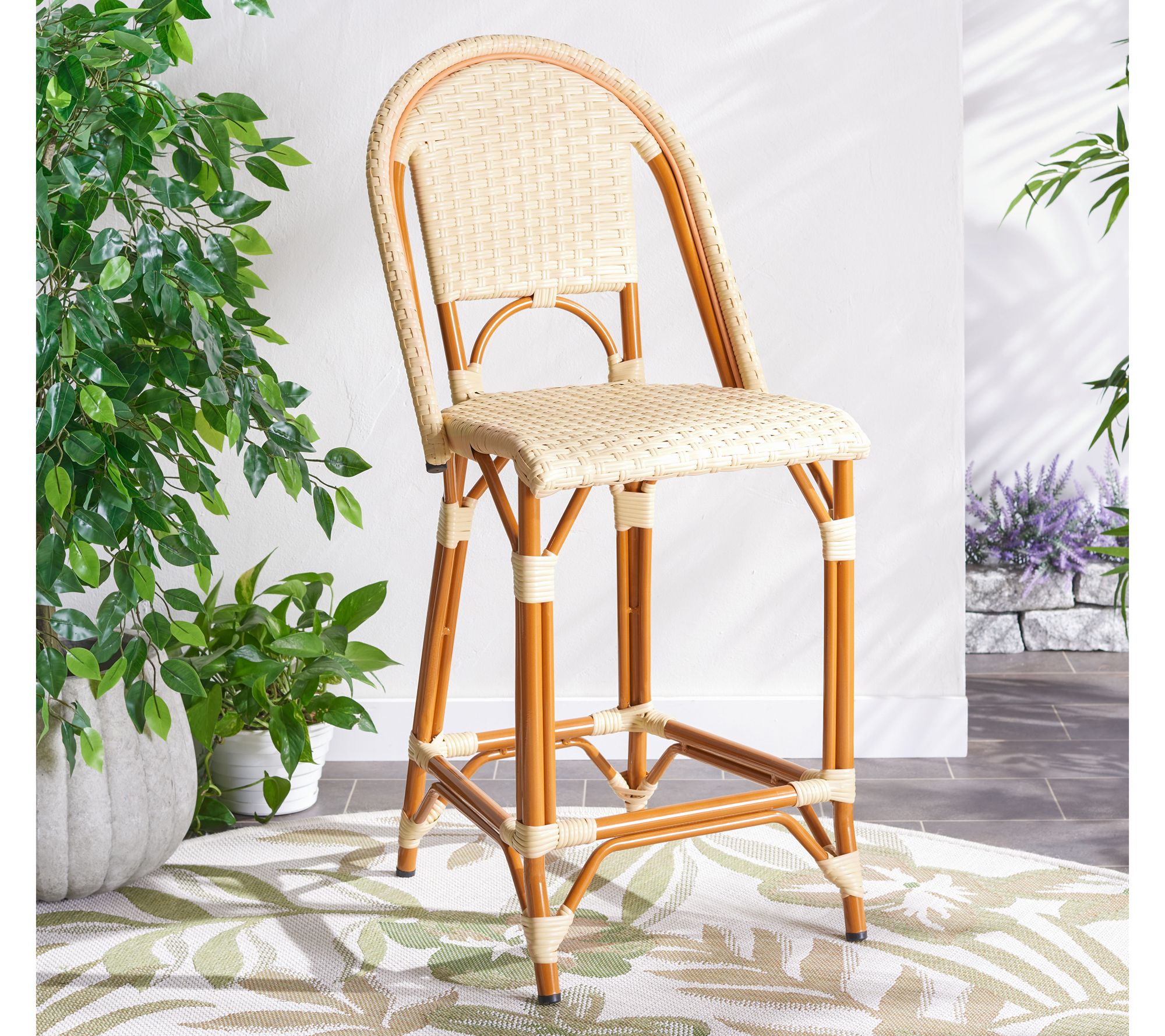 Enhance your outdoor dining experience with the California counter stool by Valerie. This modern take on the classic French bistro chair offers a welcoming silhouette that complements any high dining area on your patio, balcony, or backyard. The faux wicker wrapped around an aluminum frame ensures durability while providing a comfortable seat that embraces your body. From the Valerie Parr Hill Collection.