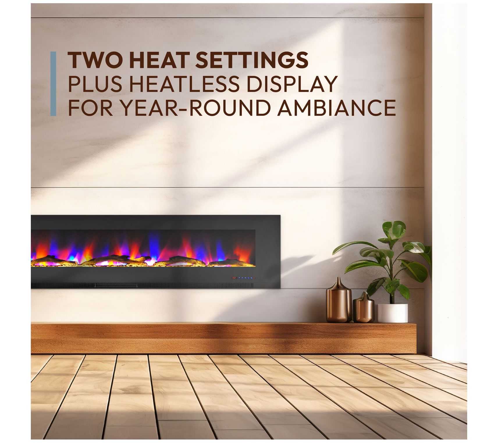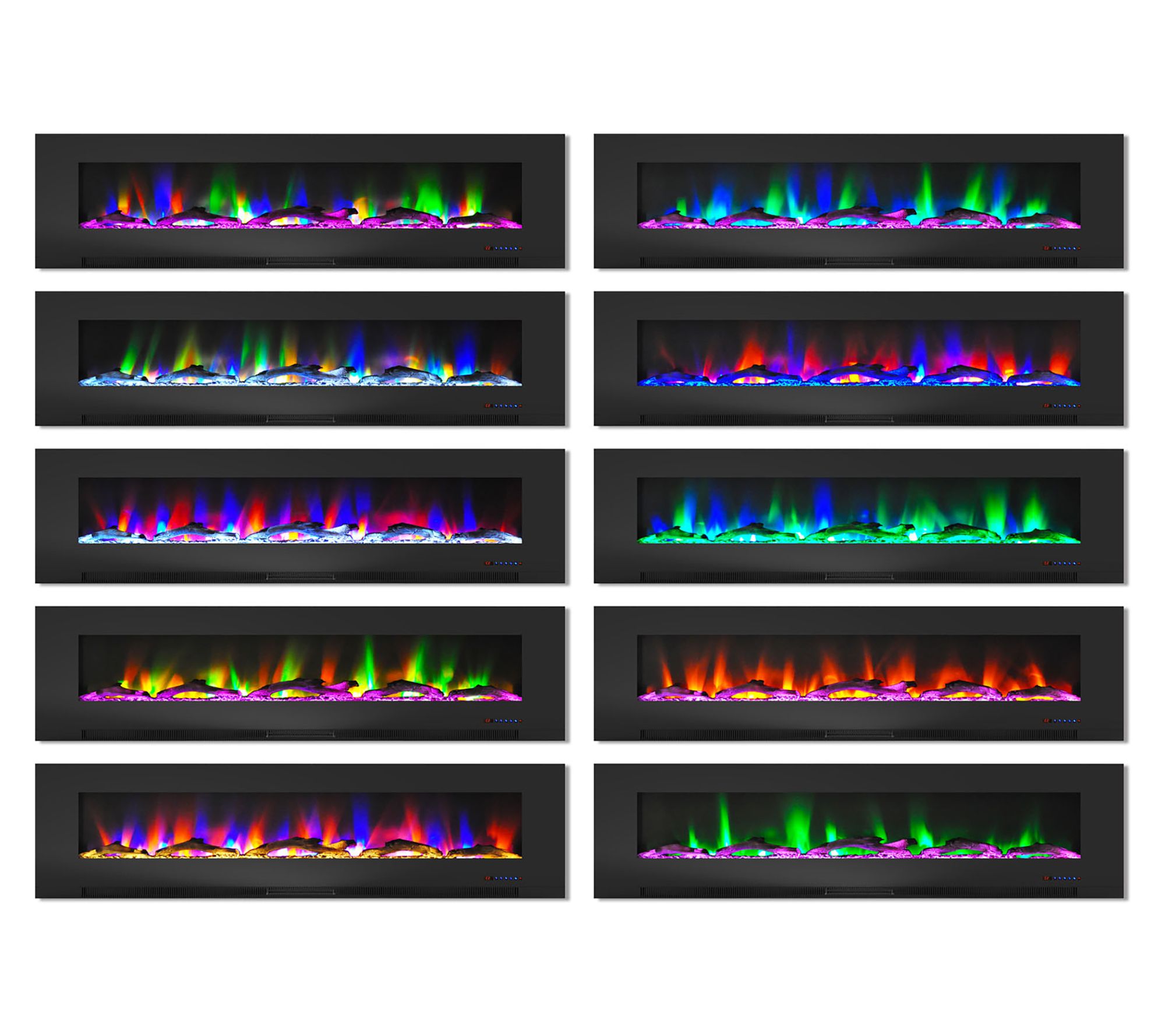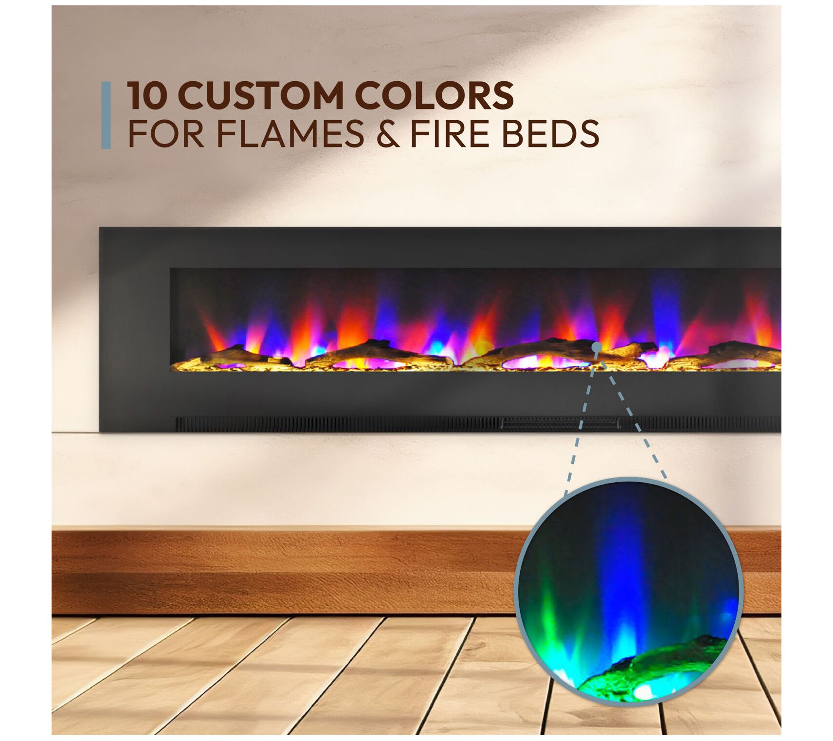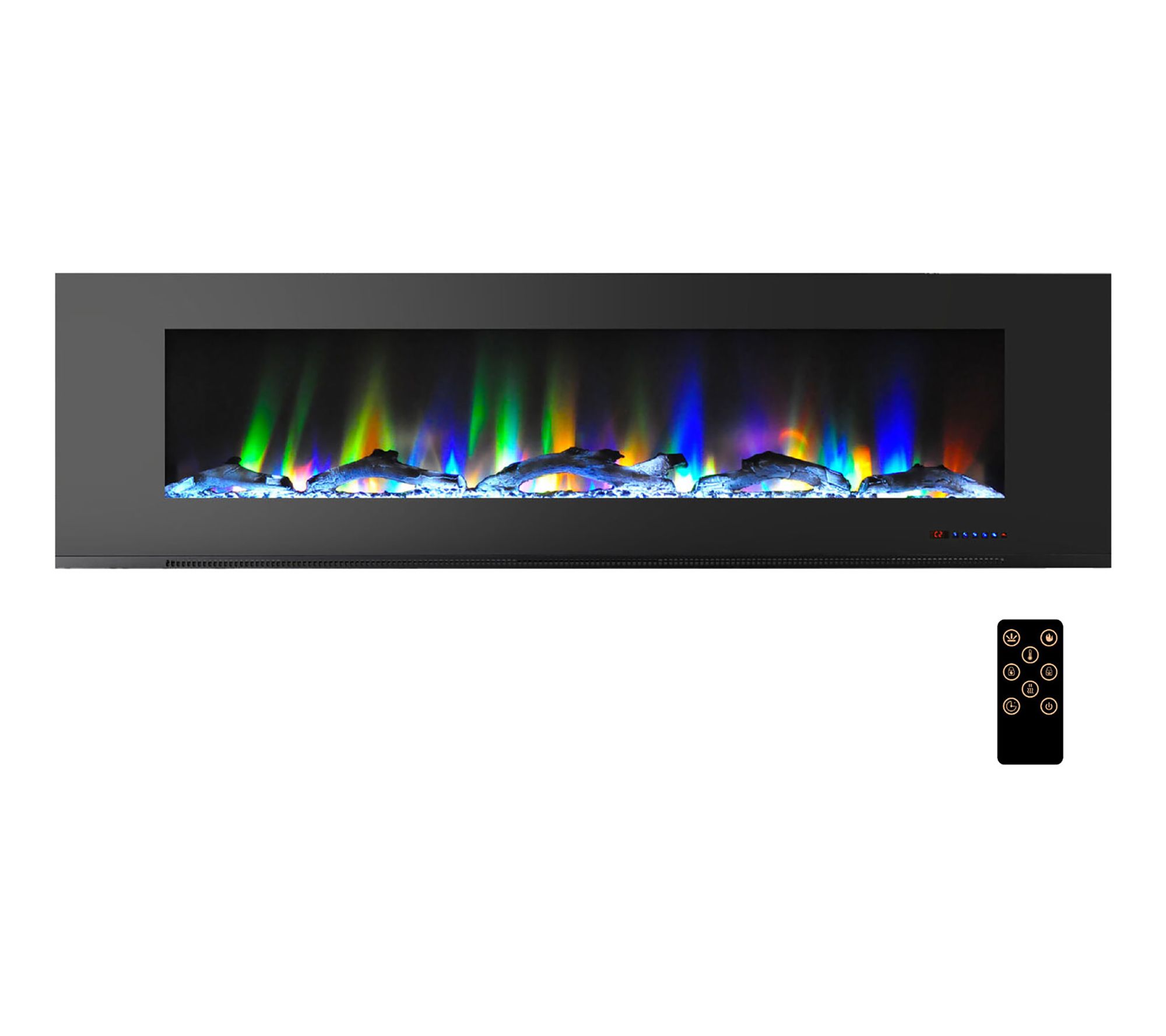Treat yourself to cozy evenings by the fire with a 78" color-changing wall fireplace by Cambridge. Featuring a stunning array of flame colors and effects that flicker and glow across a bed of driftwood logs, you can customize a beautiful fire to suit your mood. The enchanting LED flames operate with or without heat, providing year-round enjoyment whenever you desire. From Cambridge.