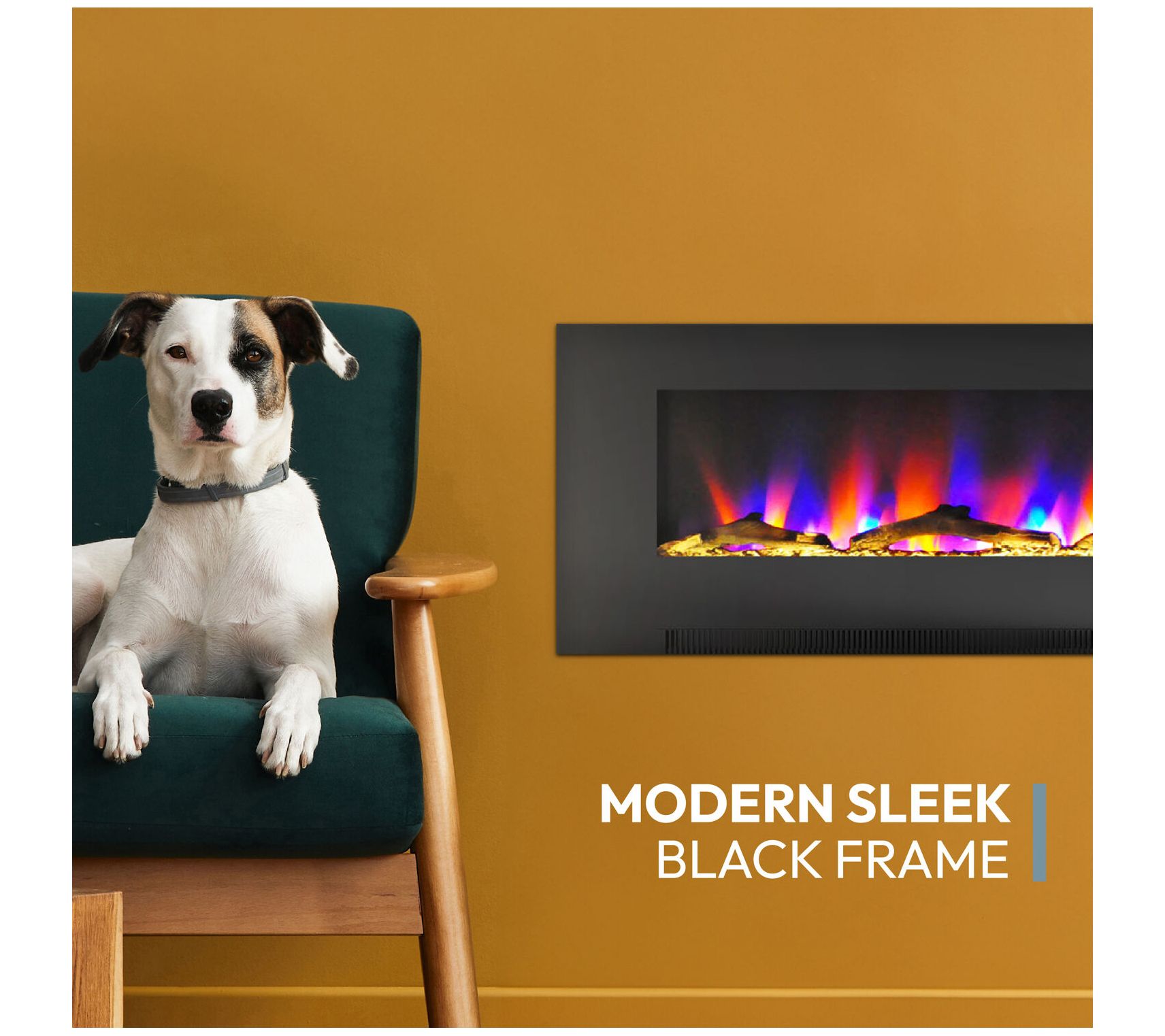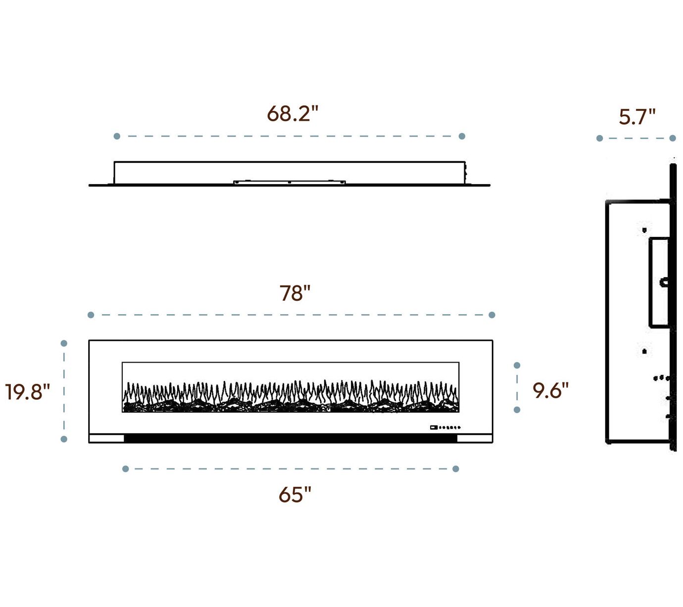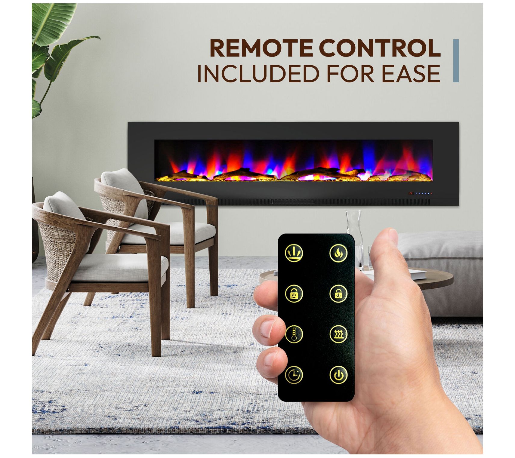 • Includes fireplace, remote, CR2025 battery, wall mount bracket, mounting screws, and manual