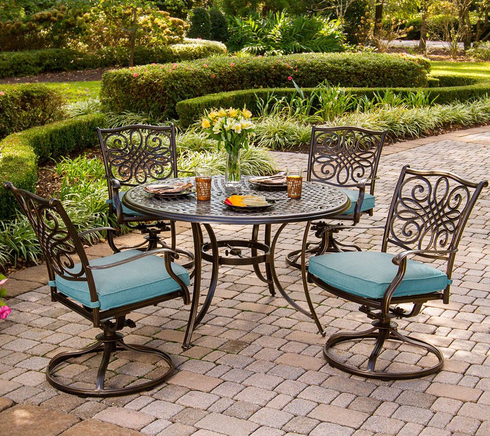 Your interior decor is on point--shouldn't your patio look just as good? This five-piece outdoor dining set is perfect for family grilling nights or drinks by the pool. The foam cushions on the swivel chairs make this set as comfortable as it is inviting. From Cambridge.