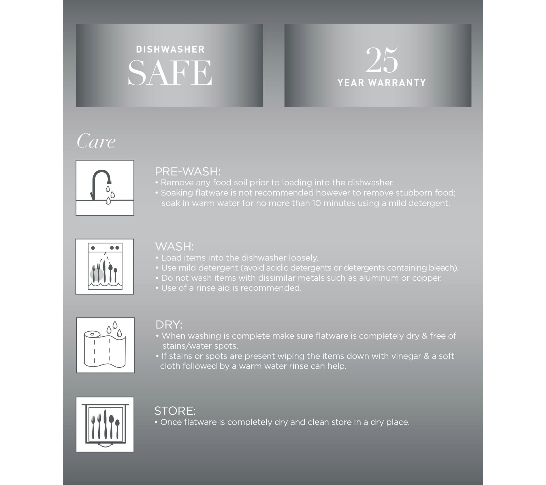 • Includes four salad forks, four dinner forks, four dinner knives, four dinner spoons, and four teaspoons