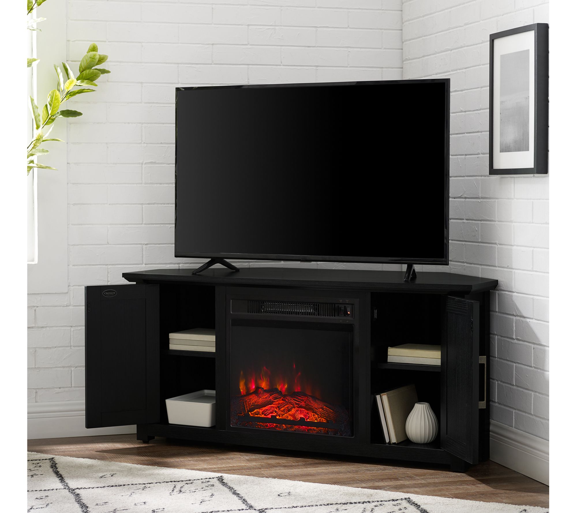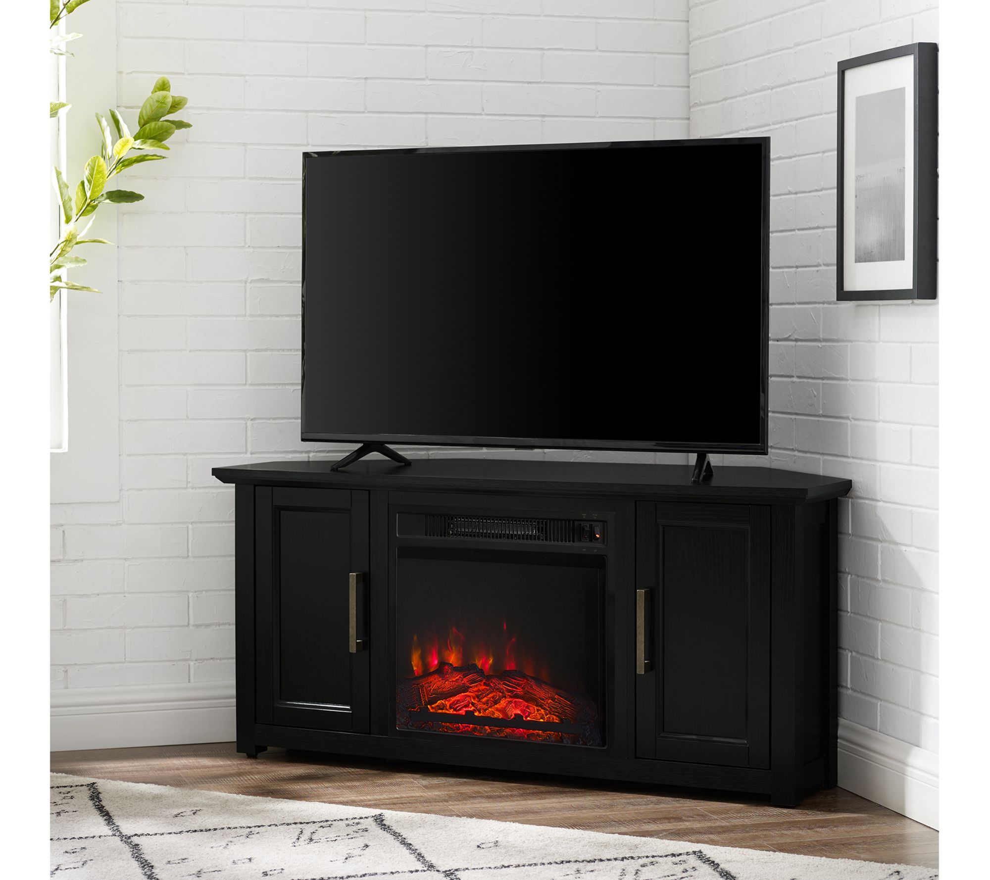 Transform your living space with the Camden 48" corner TV stand with fireplace. Perfect for smaller areas, this stand tucks neatly into any corner, providing a cozy spot for home entertainment. Enjoy the warmth of the electric firebox while keeping your media essentials organized with adjustable shelves. From Camden.