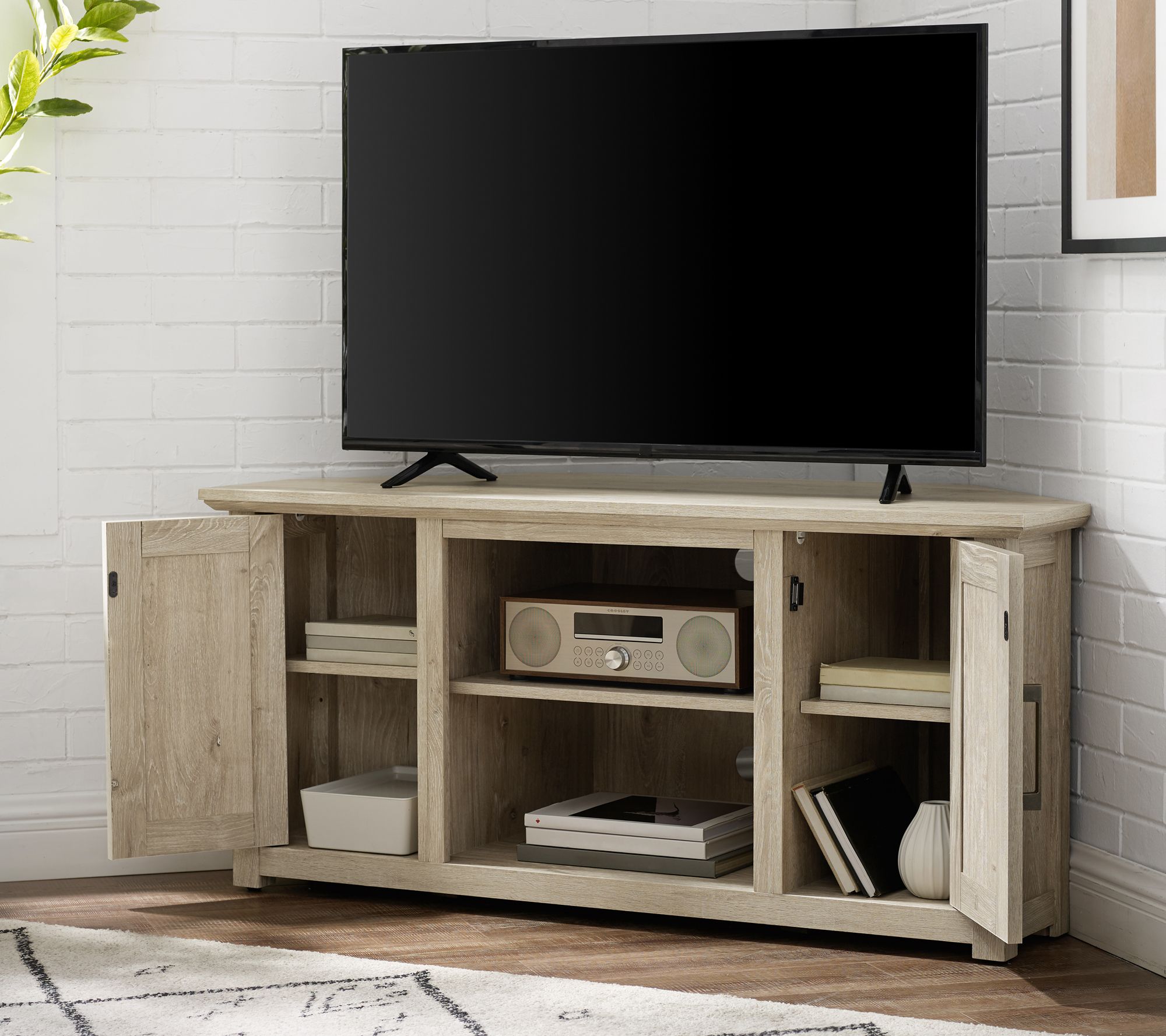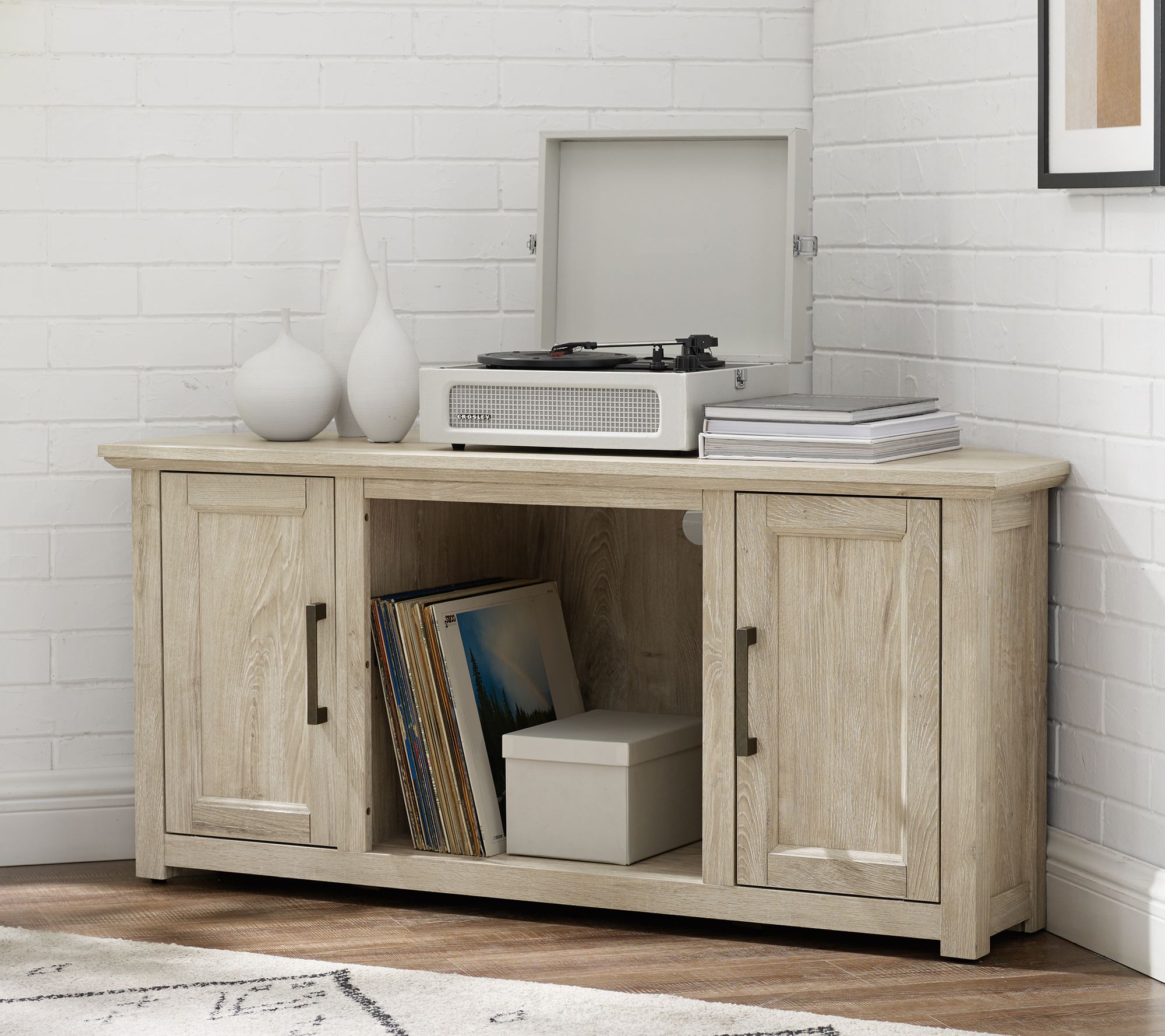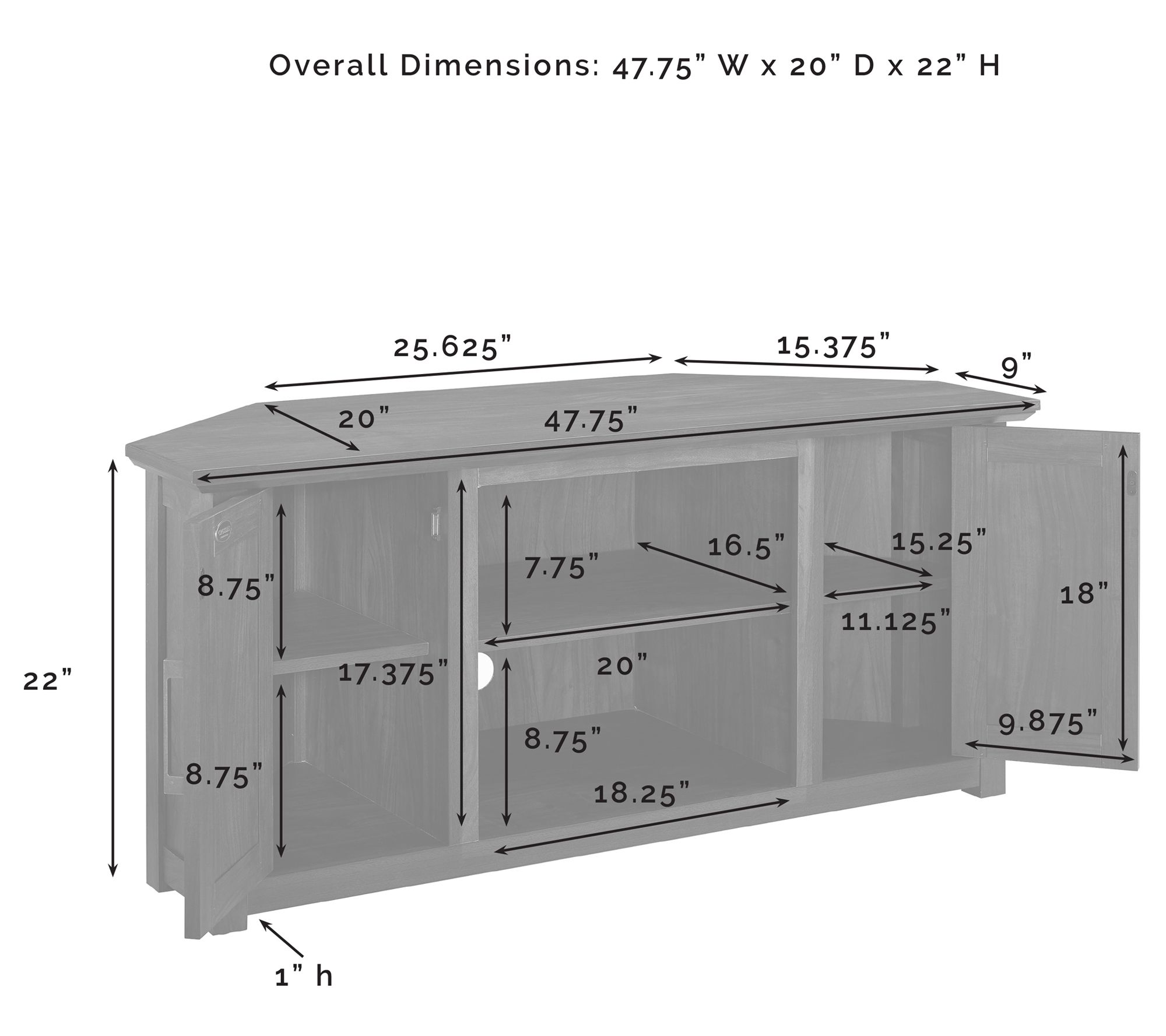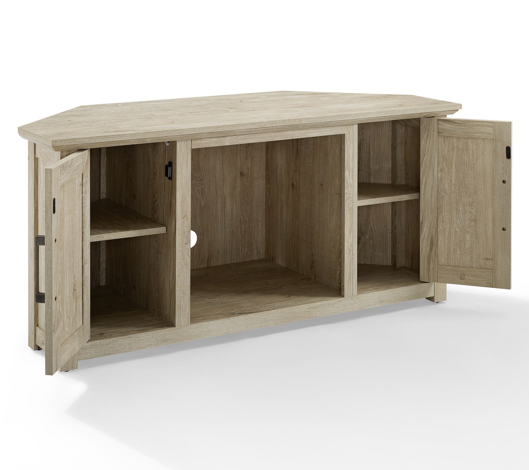 Ideal for smaller living spaces, the Camden 48" TV Stand tucks neatly into any corner. Featuring two cabinets with an adjustable shelf in each, this stand is ready to corral your books, video games, or other media. From Crosley.