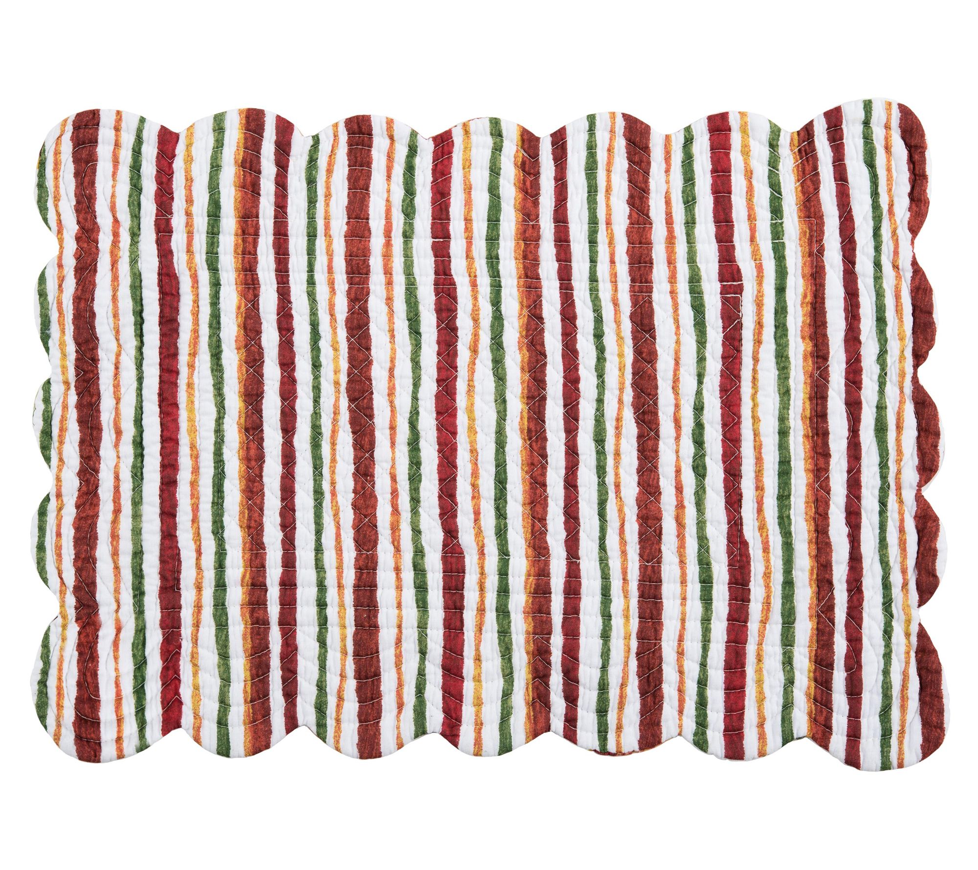 Transform your dining experience with the Camilla placemat collection, where vibrant jewel tones of red, green, and amber dance across your table. Picture a cozy gathering with friends, enjoying the warm hues and intricate fall foliage motif of maple leaves and acorns. When the mood shifts, effortlessly flip to a painterly striped pattern, perfect for any season. Ideal for those who love to celebrate seasonal changes in style. From the Valerie Parr Hill Collection.
