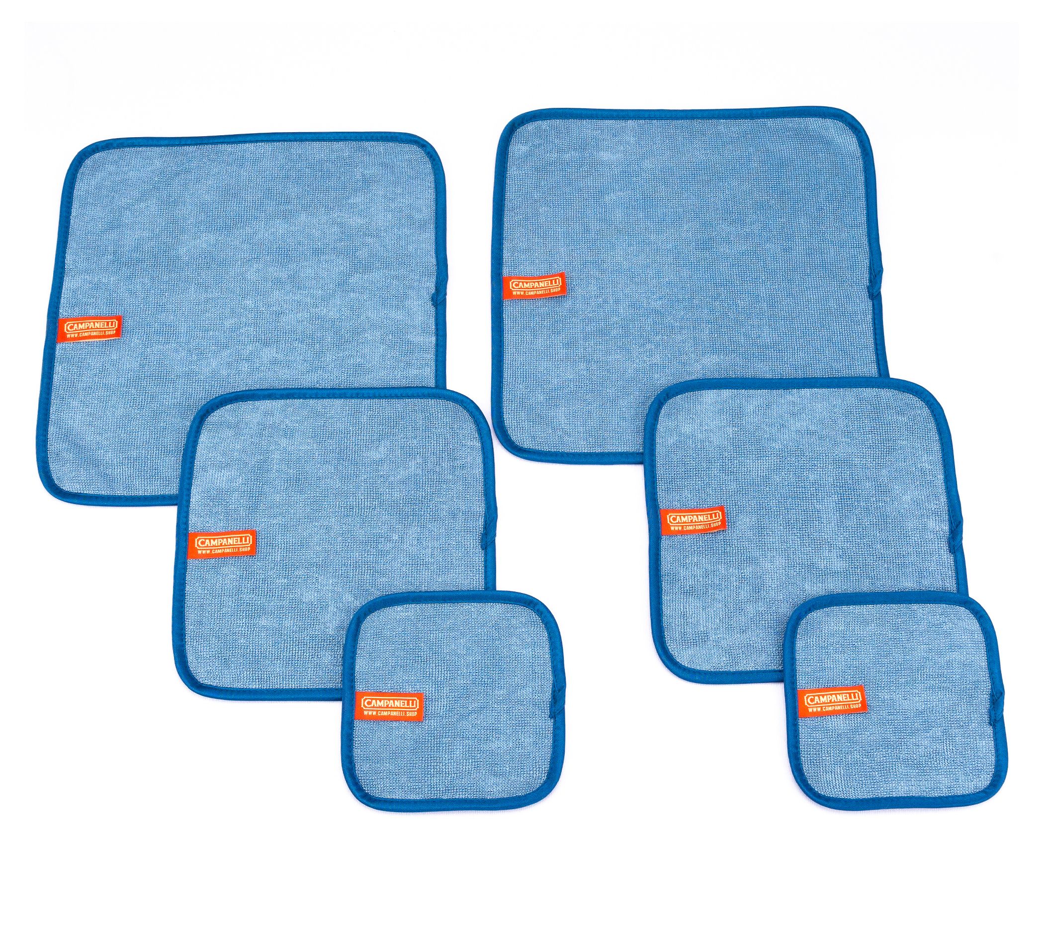 • Includes two 6" x 6" towels, two 9" x 9" towels, and two 12" x 12" towels