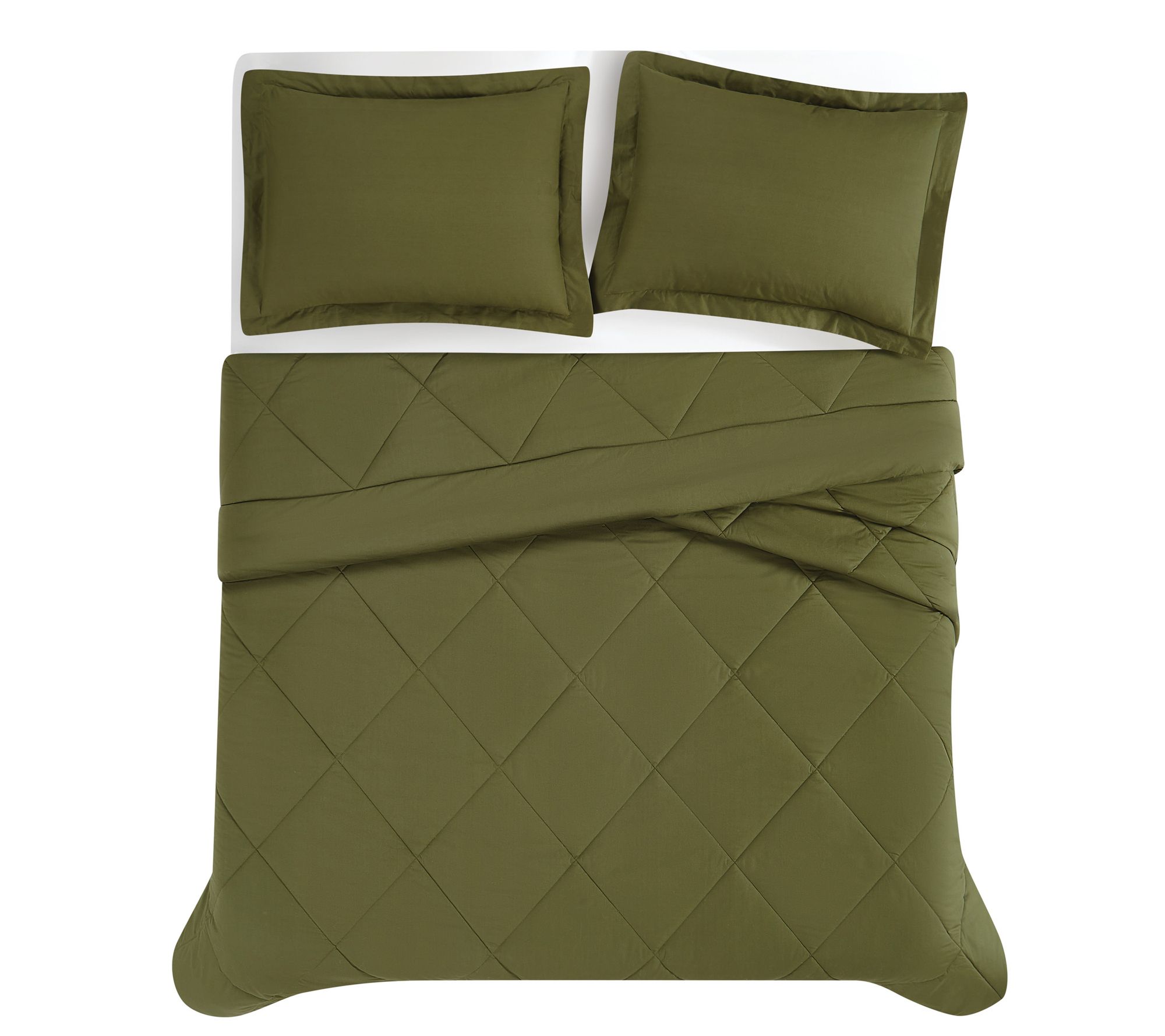 Bring a touch of elegance to your bedroom with this comforter set. The luxurious cotton percale fabric is enhanced by large-scale diamond stitching and offers both style and comfort, making it perfect for any home. From Cannon.