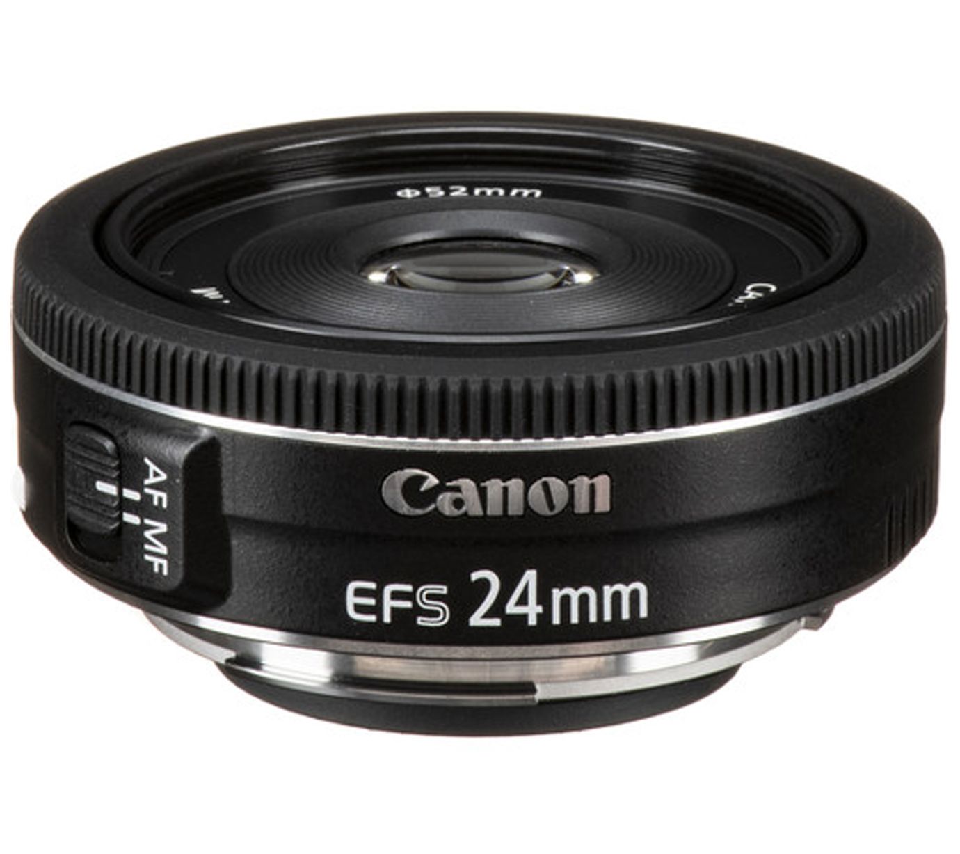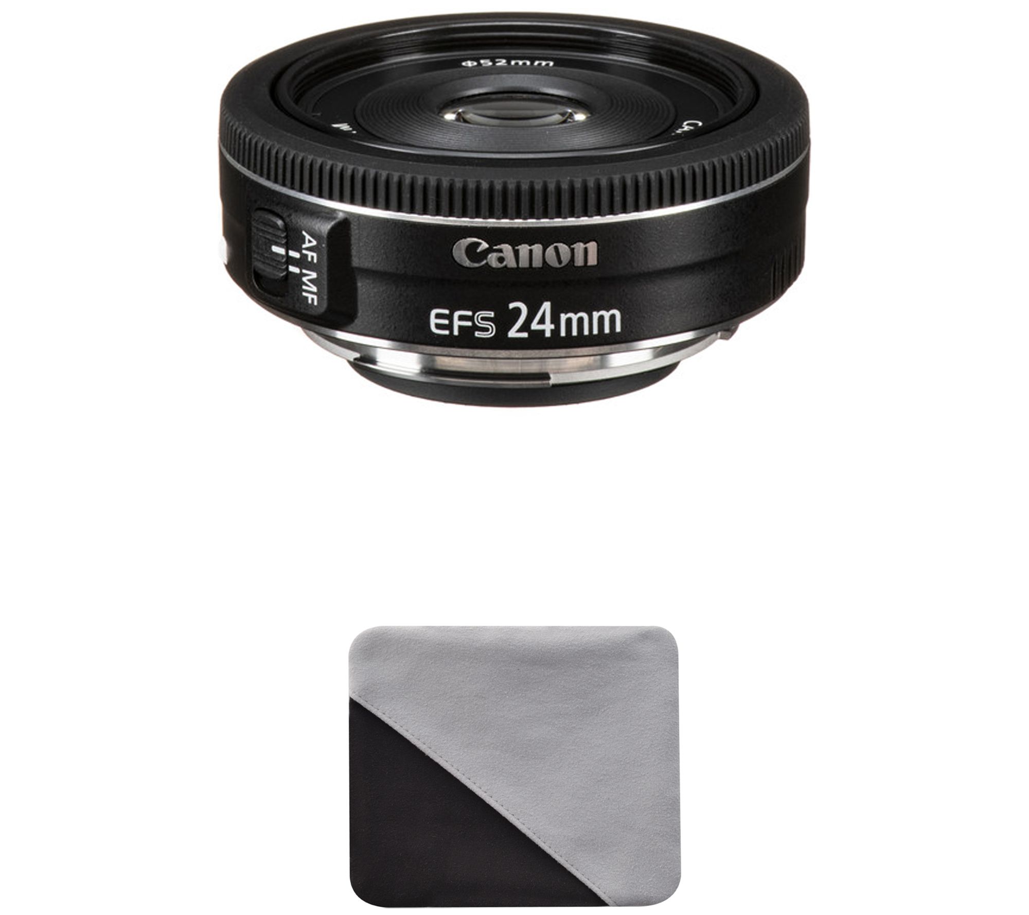 • Includes Canon EF-S 24mm f/2.8 STM lens, Canon E-52 II 52mm lens cap, Canon lens dust cap E (rear lens cap), and cleaning cloth