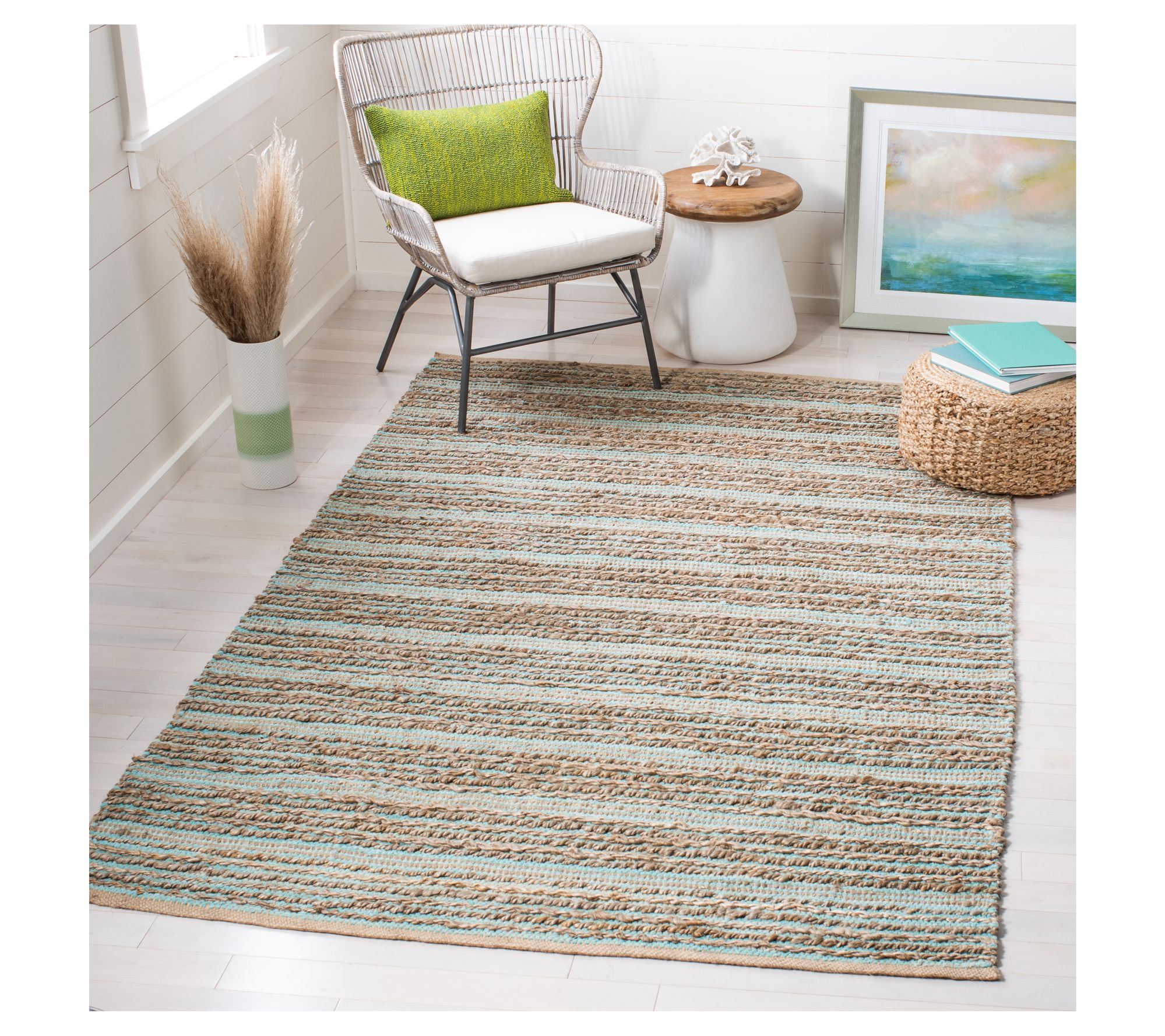Cool tones and a breezy design make this rug an easy fit for sunrooms or spaces that need a laid-back, coastal vibe. Whether in your city living room or a retreat near the shore, the soft, flat weave adds comfort and organic texture without overwhelming your decor. From the Valerie Parr Hill Collection.