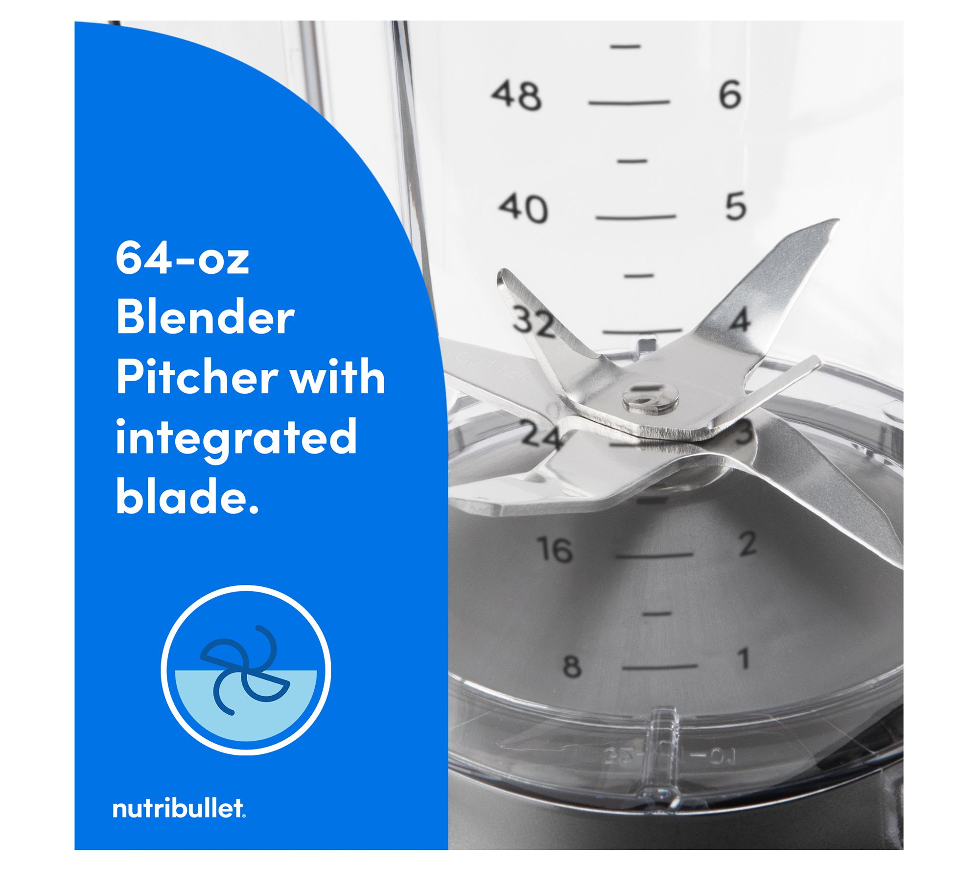 • Includes Nutribullet Pro blender combo, 64-oz blender pitcher, pitcher lid with pour spout, deluxe easy-twist extractor blade, 32-oz cup, 24-oz handled cup, two to-go lids, tamper, recipe book, and user guide