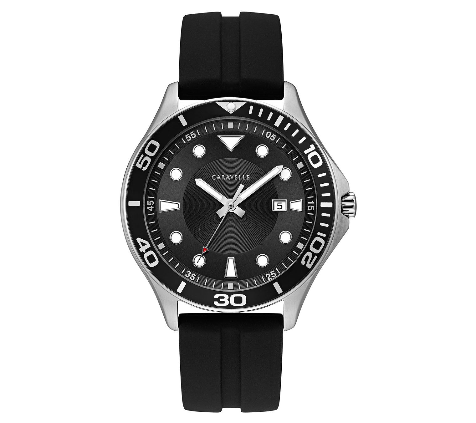 Every man should have a sport watch in his repertoire of accessories--either to stay punctual for practice, or to ensure he makes it home in time to watch the game. This option features a comfortable silicone strap and versatile coloring for all styles. From Caravelle by Bulova.