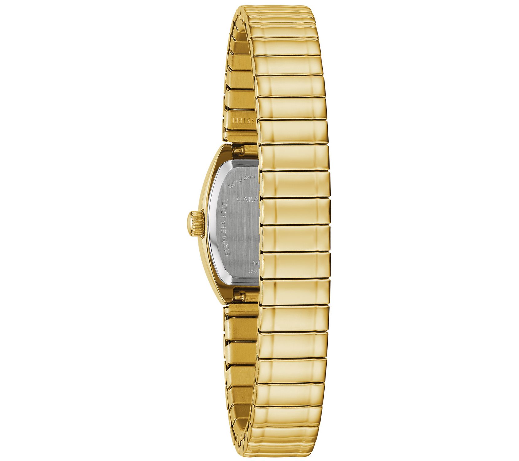Anything but square, this rectangle and oval expansion watch keeps you running on time with its sleek goldtone style. From Caravelle New York by Bulova.