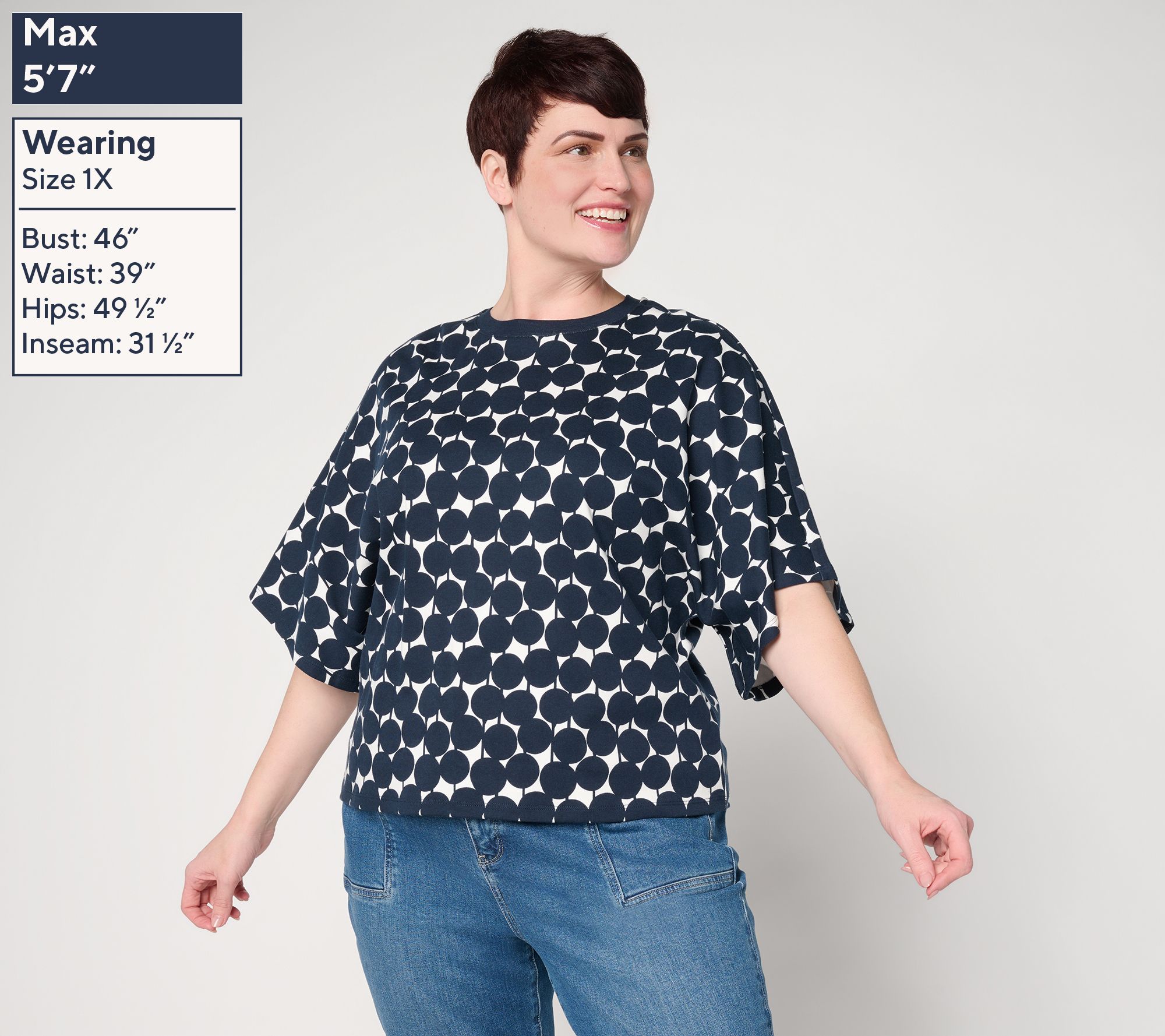 So fresh! Upgrade your weekday wardrobe with this batwing sleeve tee, made from 100% cotton for everyday ease (and carefree laundry days). The relaxed silhouette and crew neckline make it an effortless pick for entertaining at home, meeting up for lunch, or layering under your favorite jacket. From the Carla Rockmore Collection.