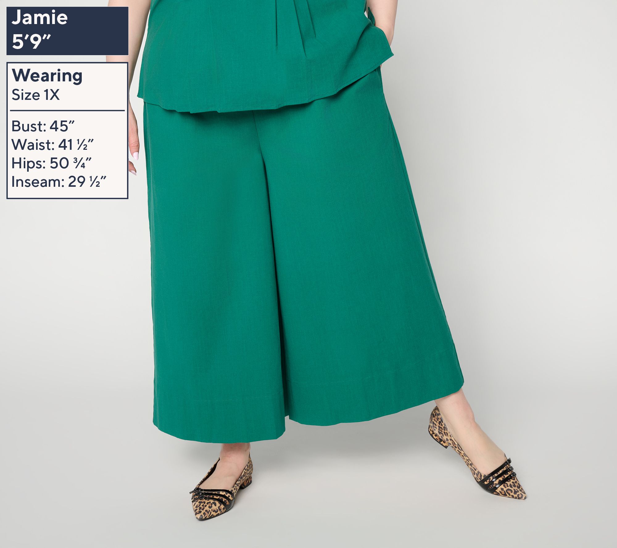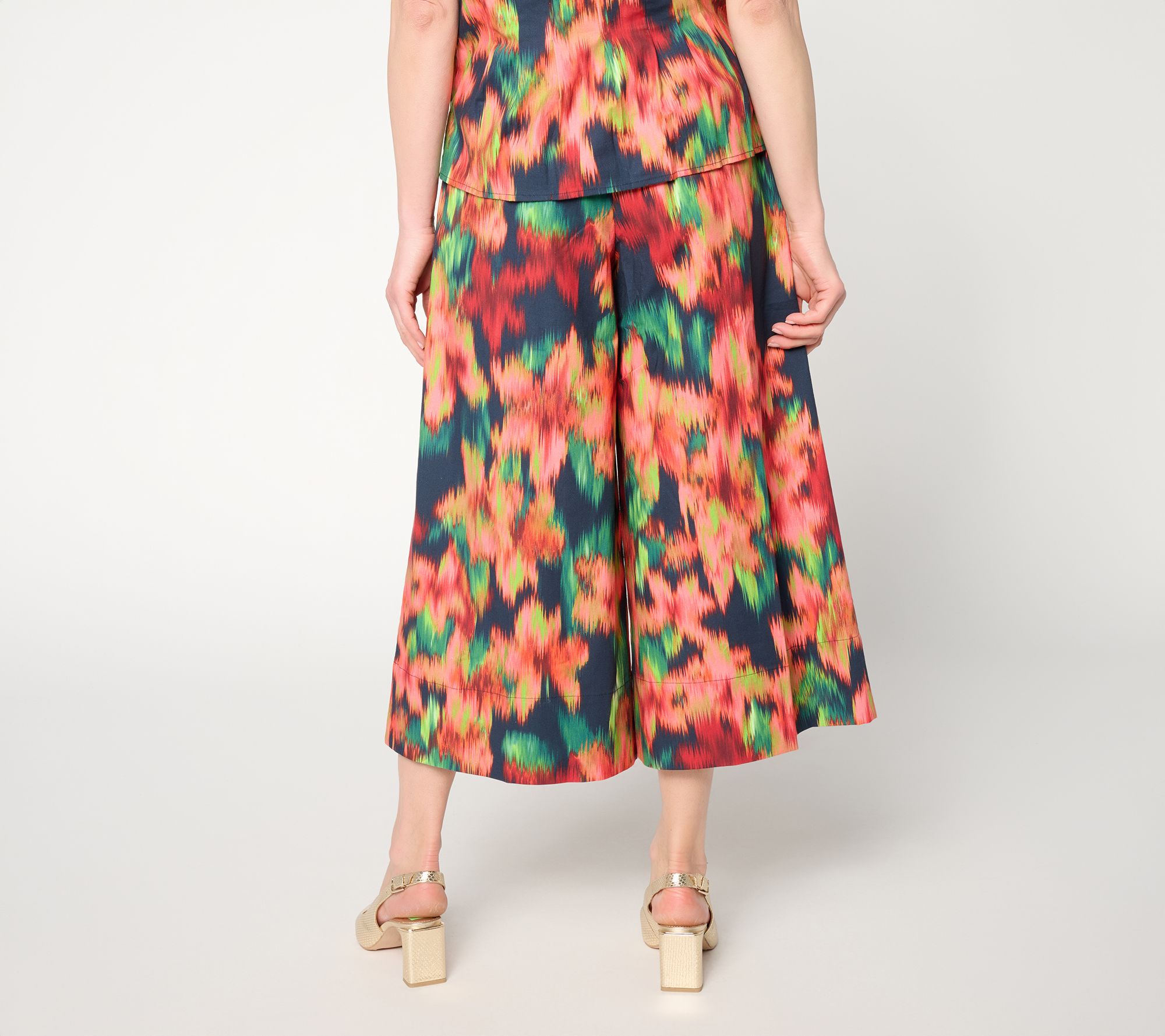 Is your favorite cafe calling? Slip into these pull-on crops and you'll be ready for an early morning latte in seconds. Then head on over to the office for a day of meetings followed by an al fresco dinner date with friends. Cotton-rich with a sprinkle of spandex, the generous wide leg flows like a dream while the comfy fabric keeps you movng with ease from morning to evening. From the Carla Rockmore Collection.