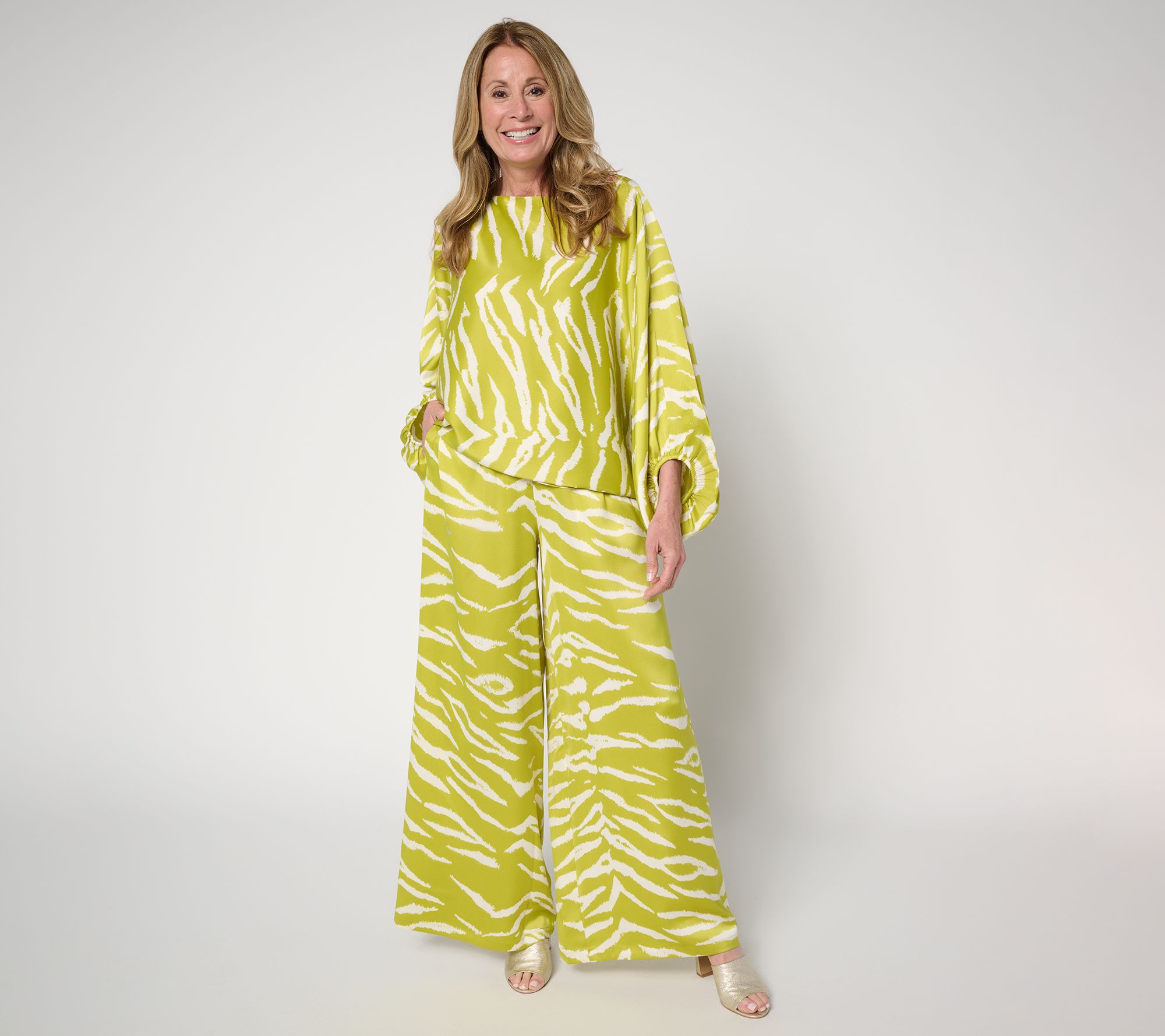 Take a page from the old-school glamour of Palm Springs, the unfussy sophistication of the Italian Riviera, or the style book of Carla Rockmore! These sweeping wide-leg pants in elegant satin have you dressed to the nines in minutes flat for celebratory luncheons, chic weekend trips, and splashy social pics -- perhaps lounging on a chaise! From the Carla Rockmore Collection.