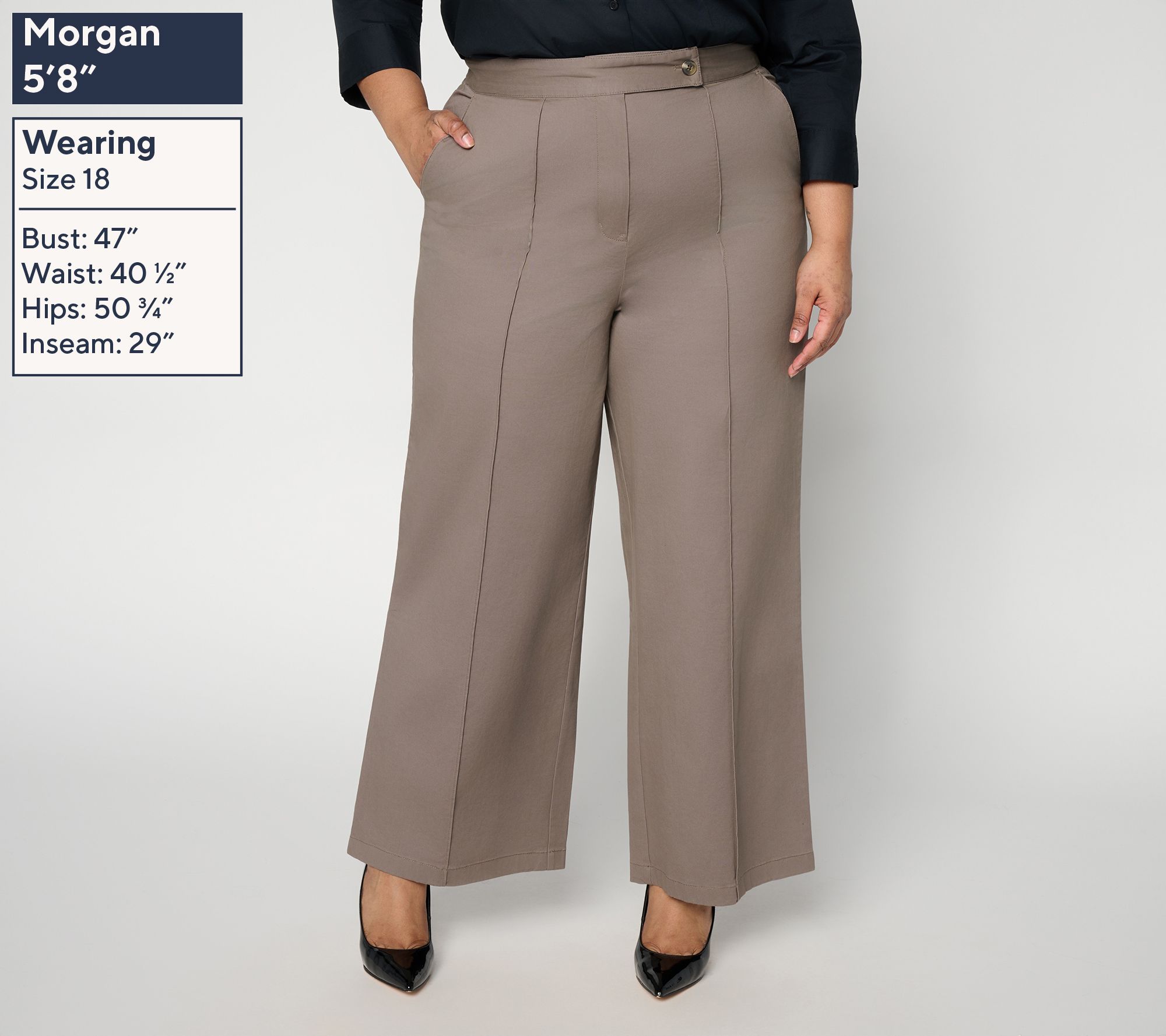 The trousers you need now... made extra flattering thanks to Carla Rockmore's keen eye for design (nobody does pleating better!). Reach for these wide-leg pants in smooth, stretchy cotton twill when you need to nail that impression. From Carla Rockmore Collection.