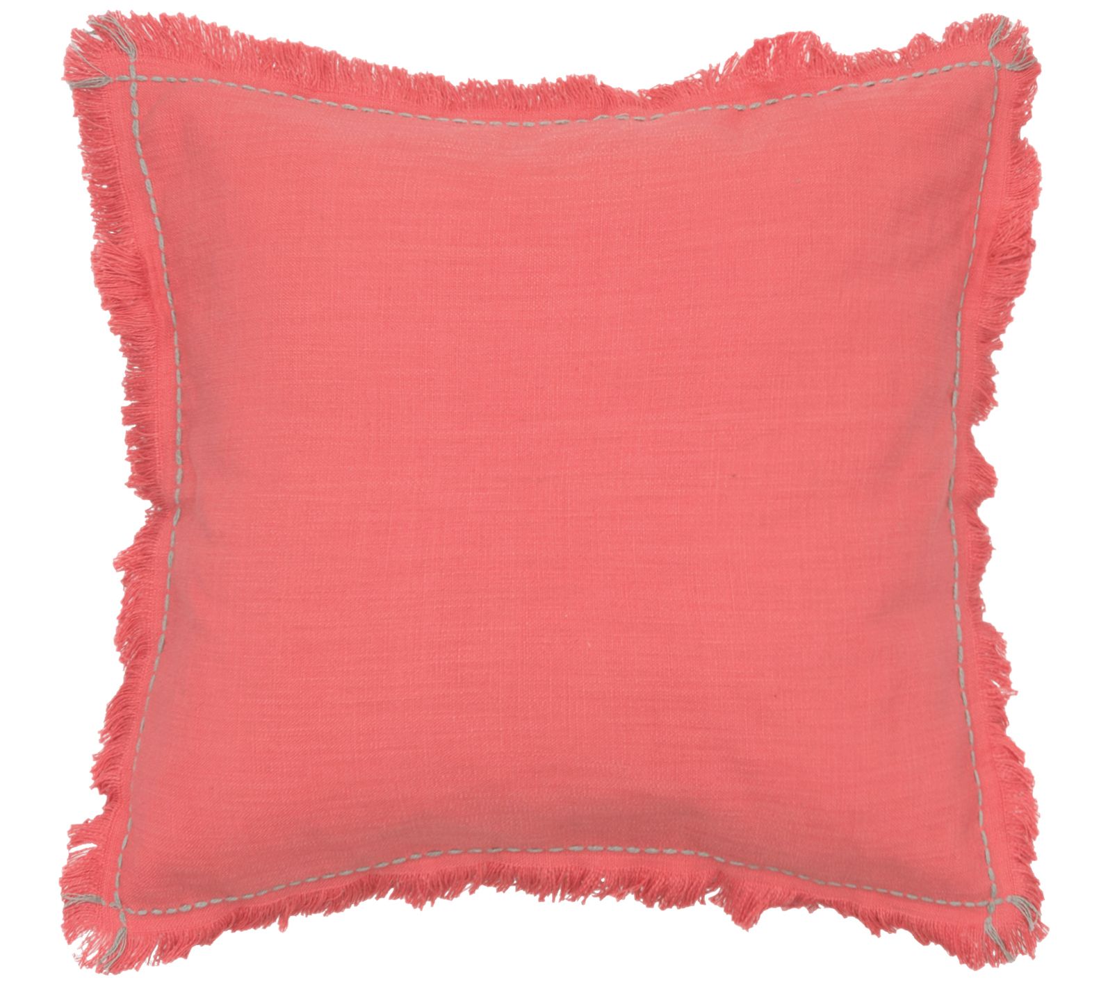Give your sofa or chaise lounge a boots of color with this handcrafted pillow featuring a contrast stitch border and a soft fringe trim. From carol&frank.
