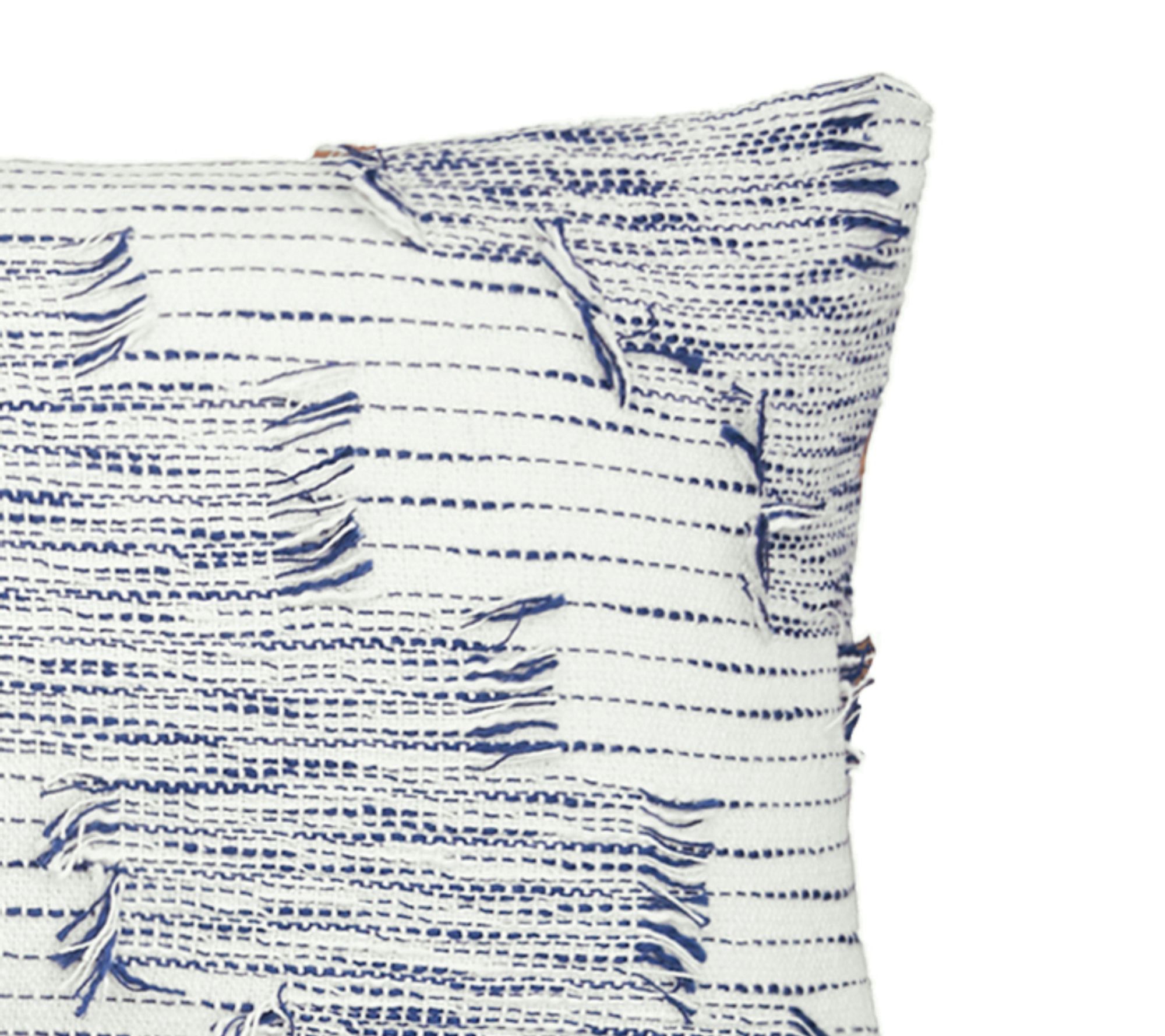 Add an on-trend statement to your decor when you display this fetchingly frayed and distressed accent pillow. From carol&frank.
