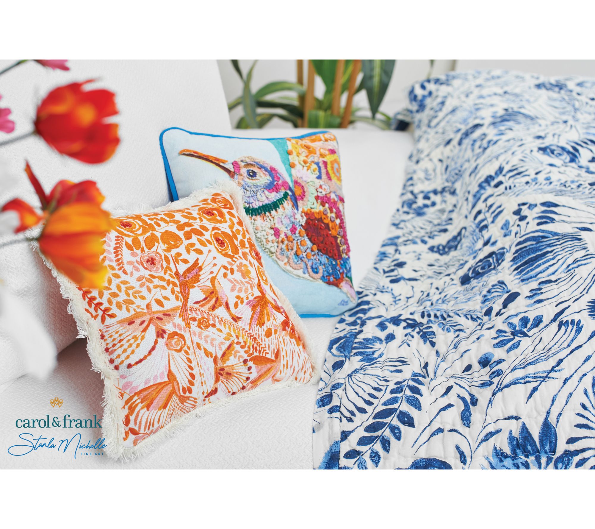 carol & frank Hummingbird Floral Pillow