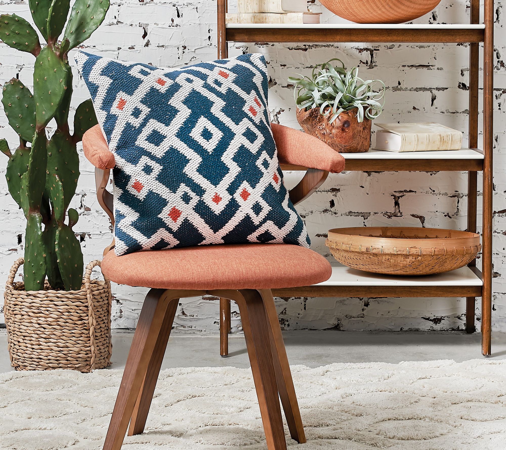 Contrasting colors and bold patterns make this pillow stand out wherever it's used. From Carol & Frank.