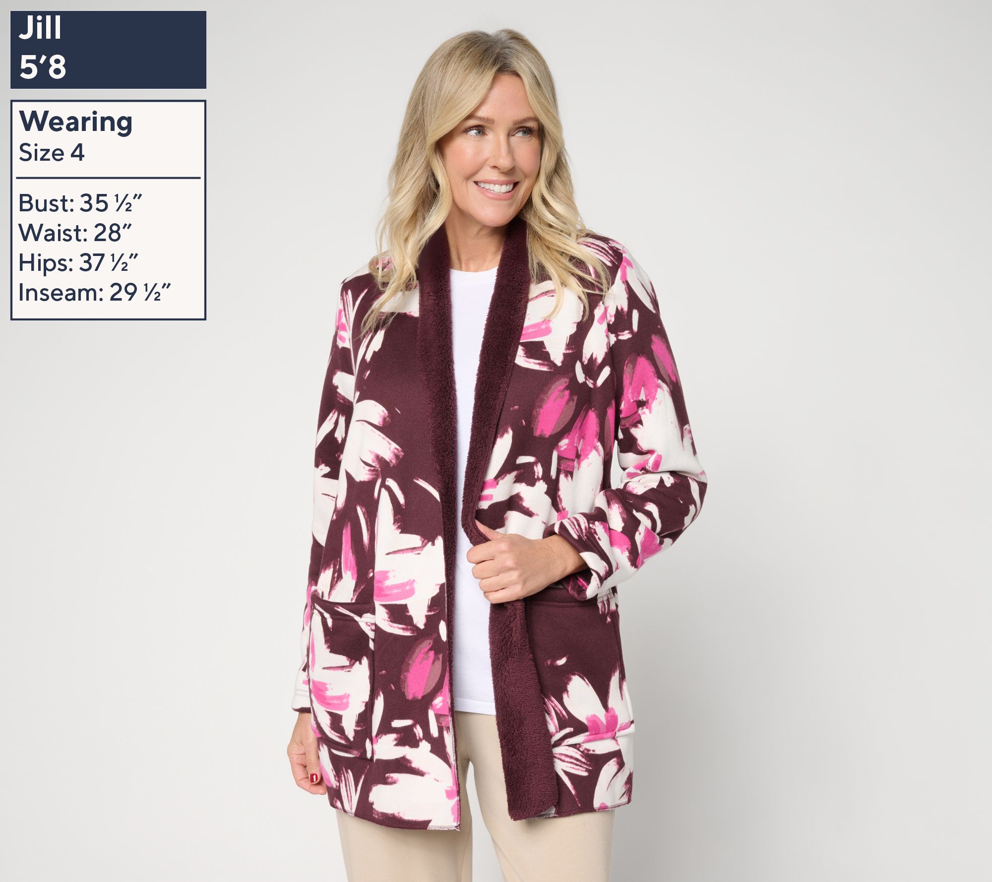 Out from the cold... and into the cozy! This hacci sherpa cardi from Carole Hochman helps keep every windy, wintry moment warm and snuggly, whether you're out for adventure or chilling at home. Patch pockets provide a place to stash your phone or power snacks. From Carole Hochman.