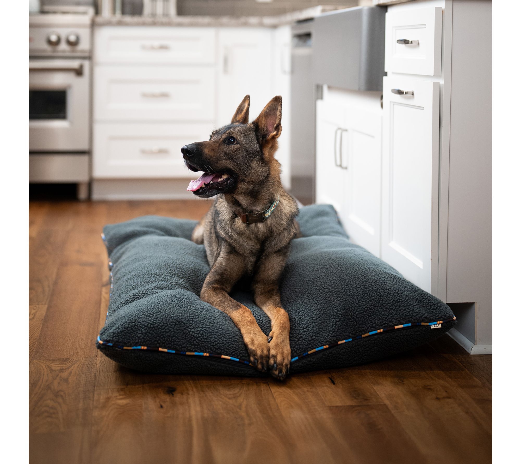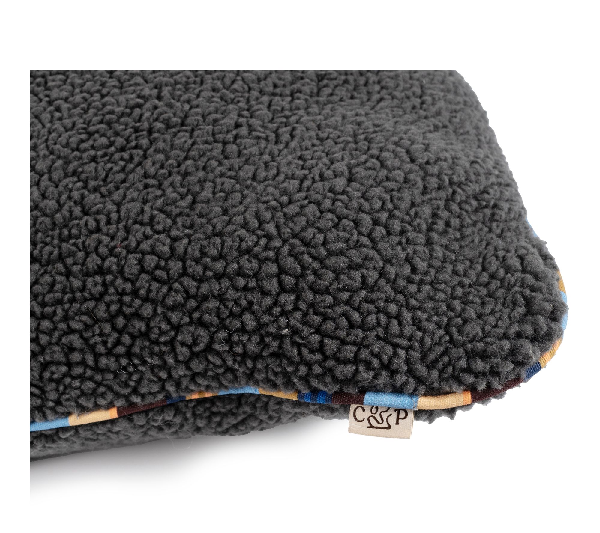 • Soft Sherpa cover with colorful brand stripe cotton cording