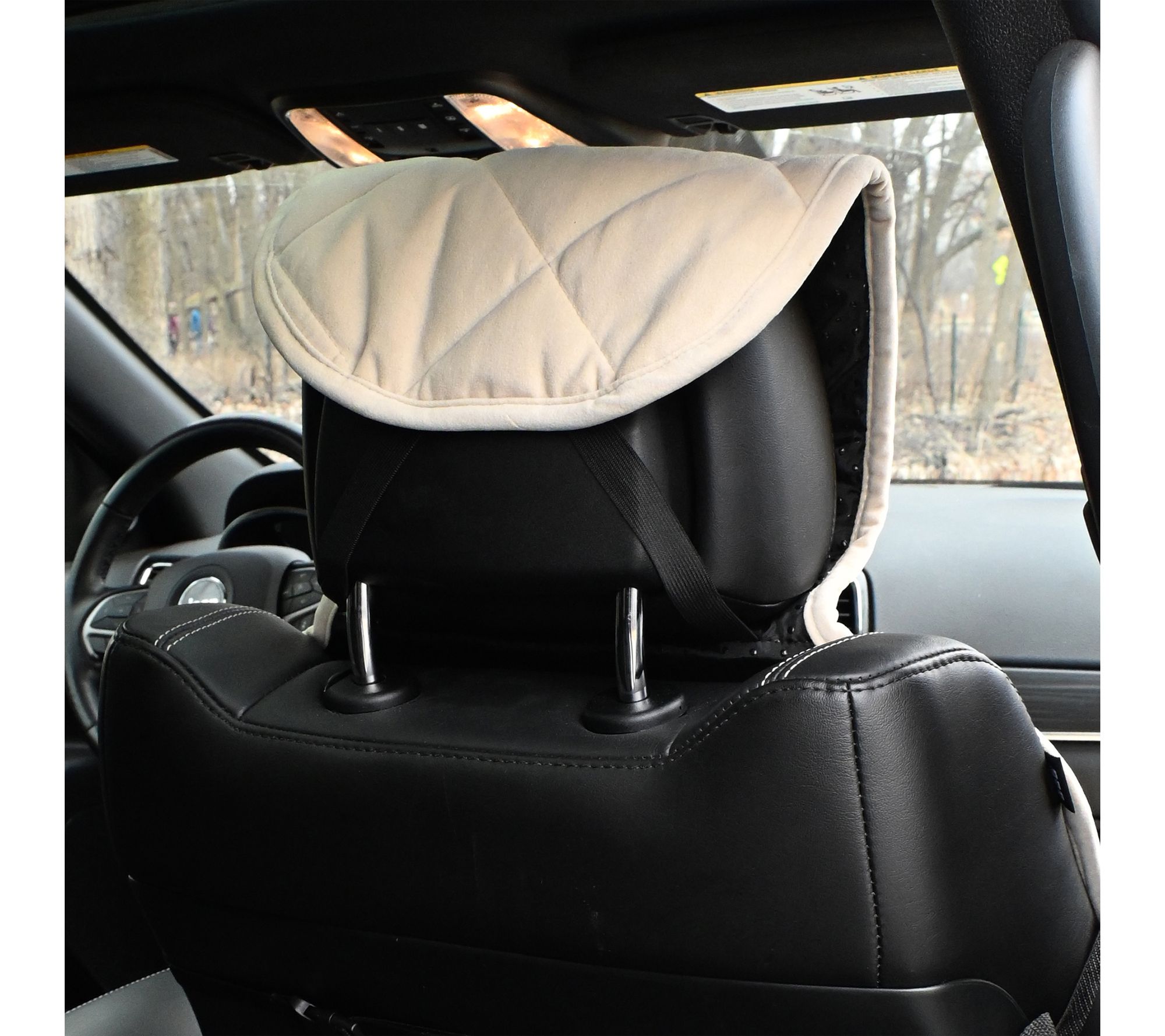 • Adjustable quick release buckle attaches easily to car headrests