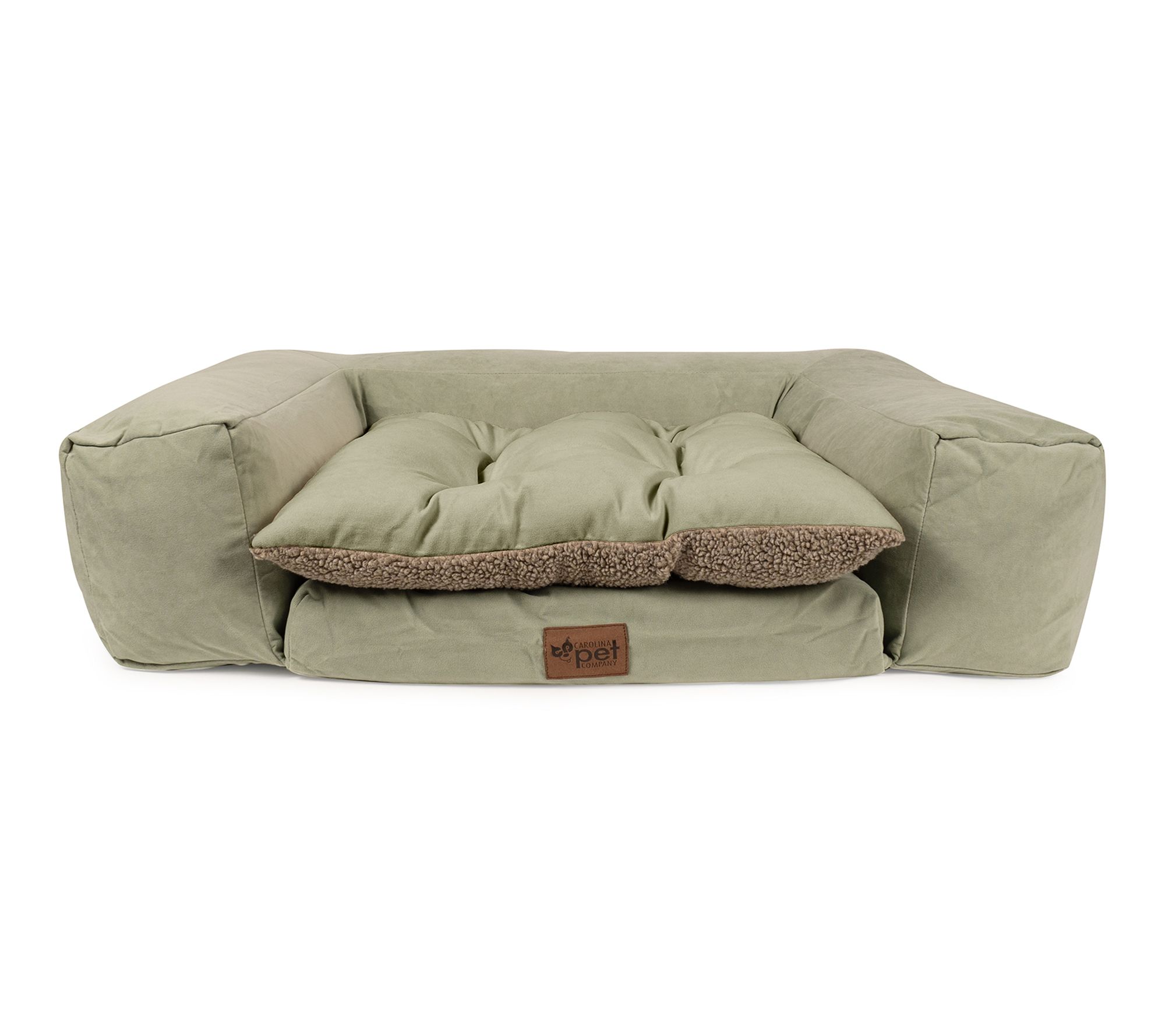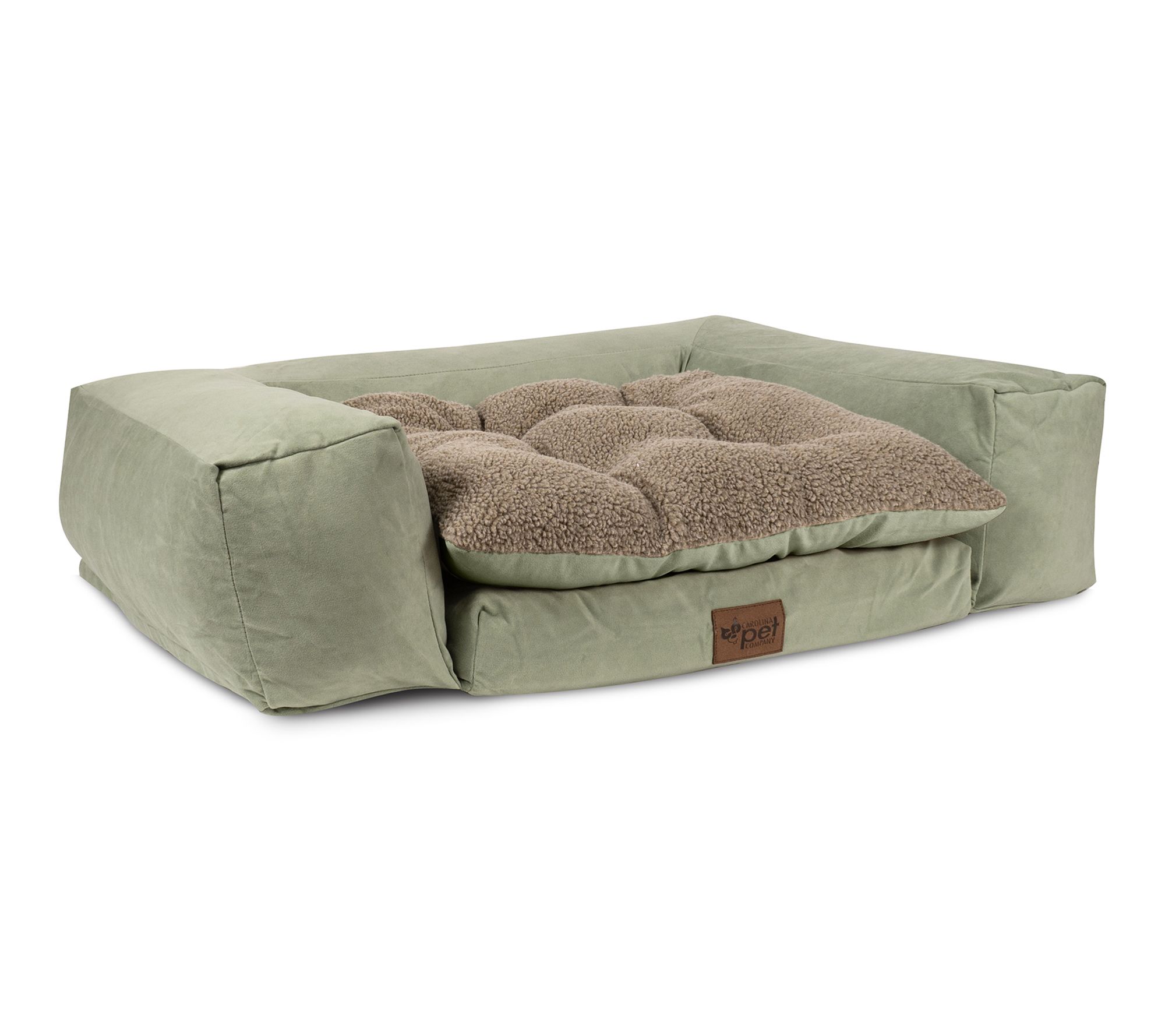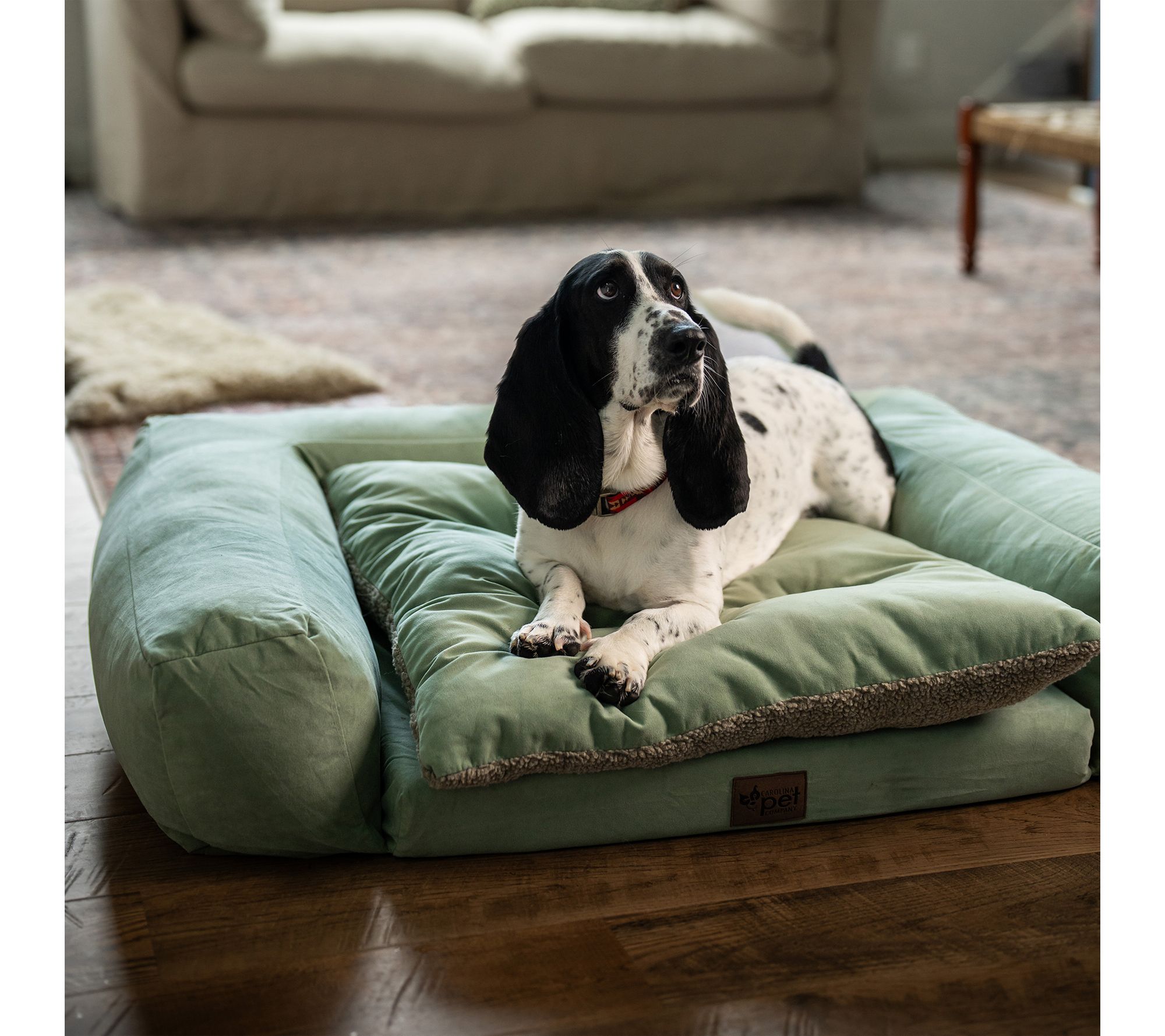 Give your pup a cozy spot to lounge and snooze with this rectangle pet couch. The orthopedic foam base and plush, tufted bolster cradle joints for relaxing, restorative comfort, while the reversible cushion and machine-washable cover make cleanup simple. From Carolina Pet.