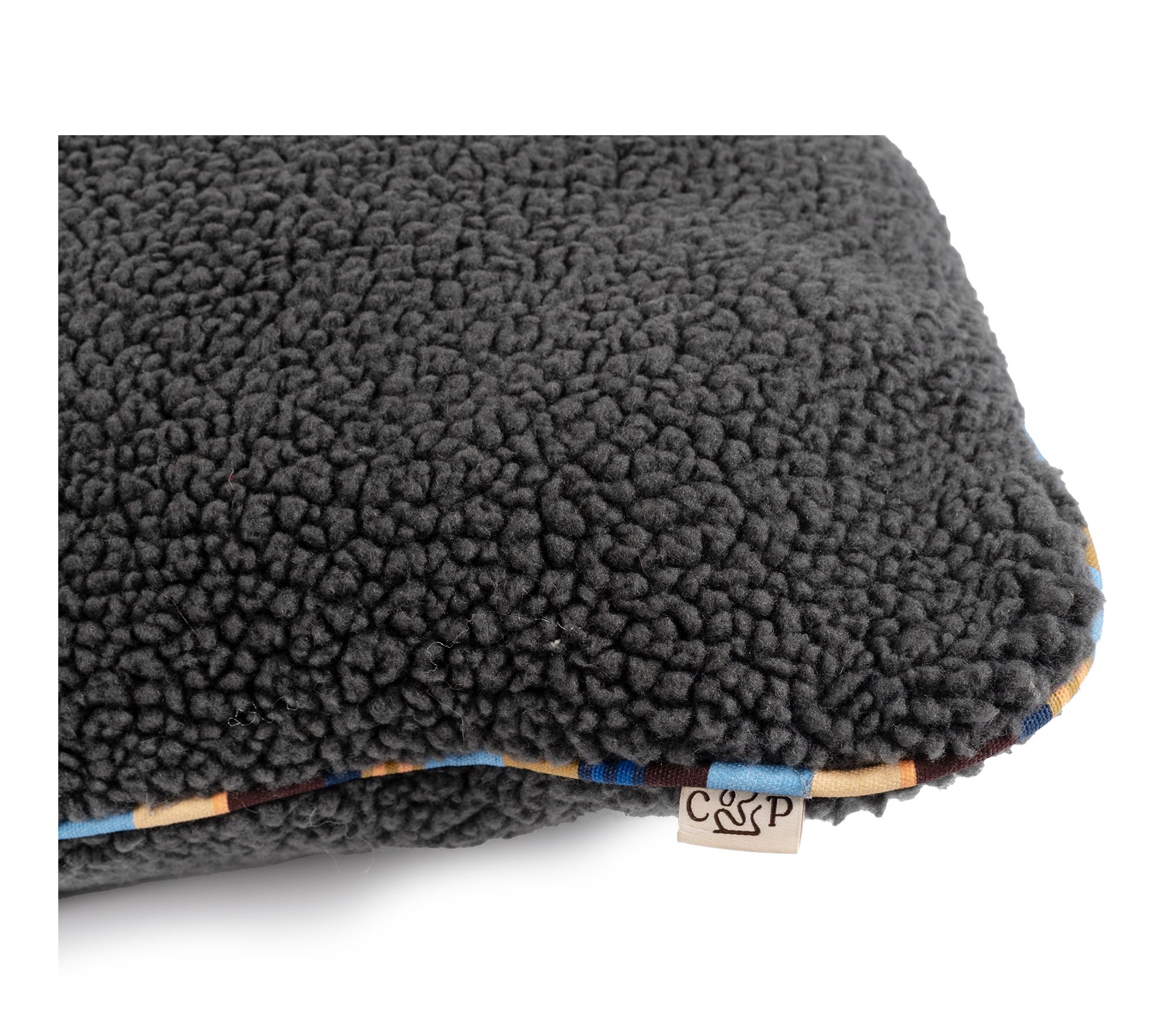 • Soft sherpa cover with colorful brand stripe cotton cording