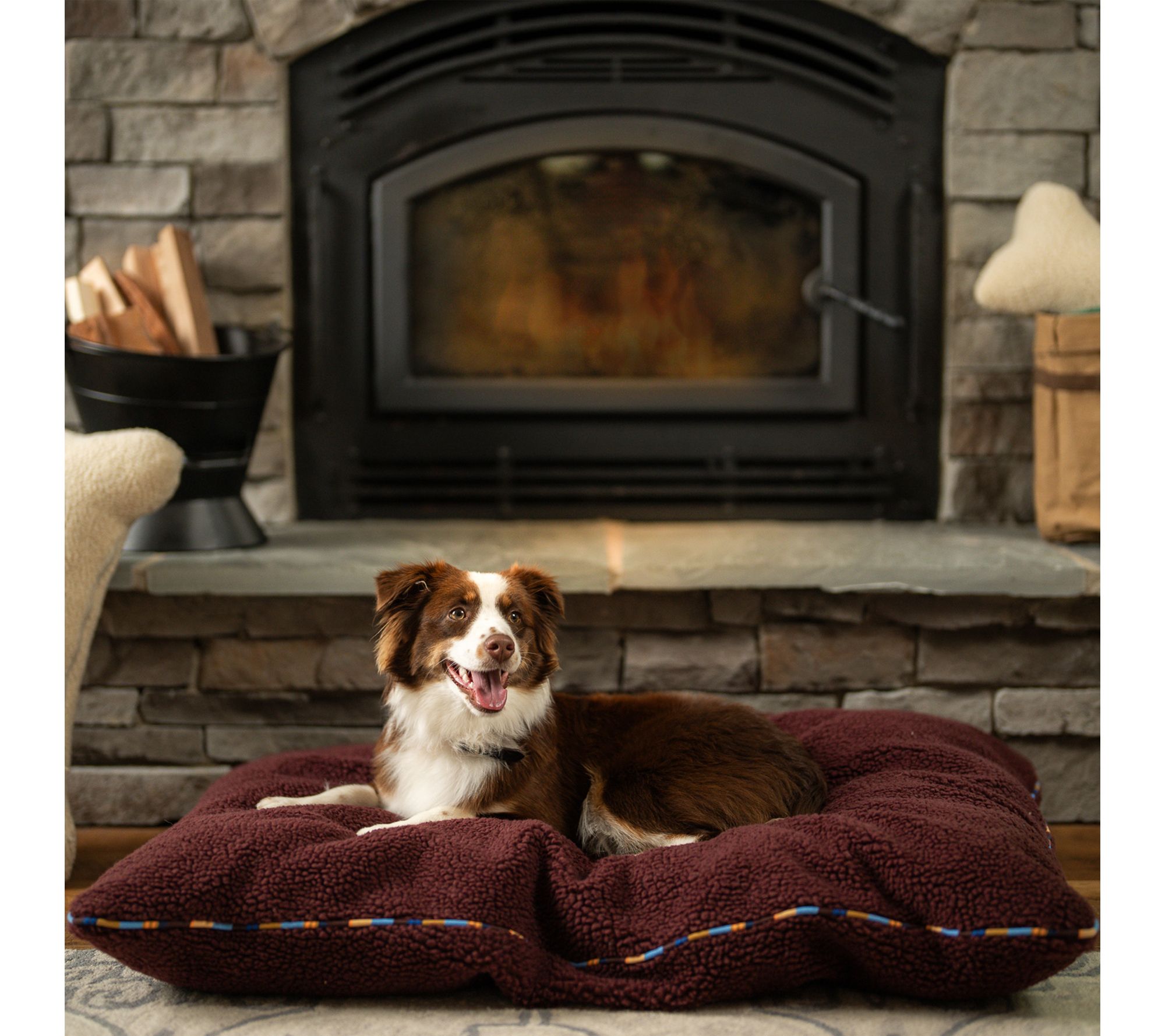 After a day of play, your furry friend can stretch out and relax on this plush sherpa pillow bed, featuring a cozy surface and vibrant brand stripe accents. The supportive chopped foam fill creates an inviting spot for lounging, napping, or snuggling, while the removable, machine-washable cover keeps clean-up simple. From Carolina Pet.