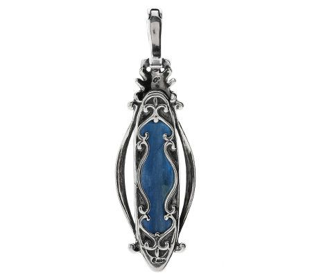 Keep it simple, sophisticated, and stunning with this highly polished sterling silver enhancer. A gracefully curved frame focuses attention on a large, elongated oval gemstone cabochon at the center. An oxidized finish deepens the drama and gives this piece outstanding appeal. From Carolyn Pollack Sterling Jewelry.