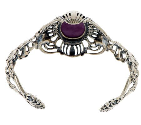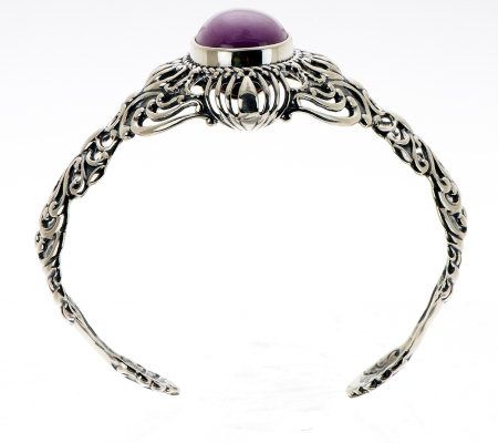Purple perfection. The openwork filigree design of this sterling silver cuff provides the ideal backdrop for the oval phosphosiderite gemstone cabochon that's beautifully positioned at the center. From Carolyn Pollack Sterling Jewelry.