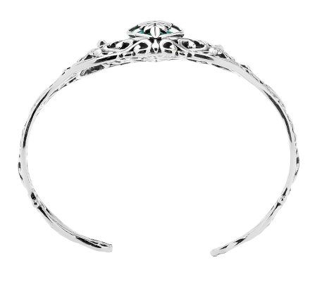 Show off your versatile side with this sterling silver cuff. The ornate openwork design complements your look on that special night out, and the interchangeable oval cabochon allows you to change your style--from brass to a gemstone--when the mood strikes. From Carolyn Pollack Sterling Jewelry.