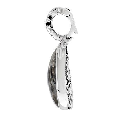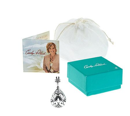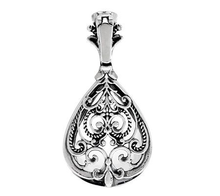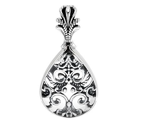 An enchanting addition. You'll be smitten the second you secure this polished sterling silver enhancer to your favorite chain. A rope-design, free-form heart filigree appears at the back, topped by a pear-shaped, clear rock crystal quartz cabochon. From Carolyn Pollack Sterling Jewelry.
