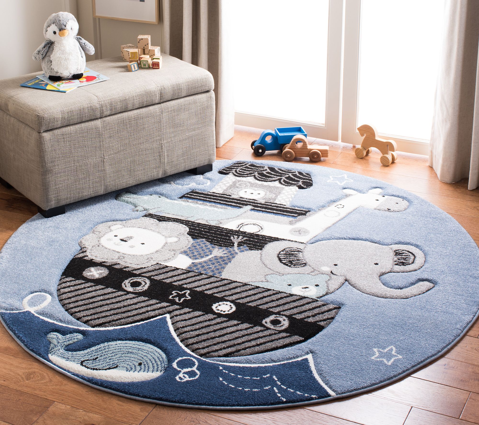 Whimsical, inspirational, and charming, this round Carousel Kids rug adds softness and style to your child's space. Featuring an adorable assortment of animals on an ark, it is designed to delight your little one with its playful motif. From Safavieh.
